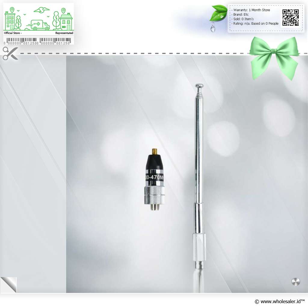 | Antena Pengganti Walkie Talkie Antena ini dapat digunakan sebagai pengganti antena bawaan yang performanya sudah menurun. Dirancang untuk walkie talkie dengan rentang frekuensi 400–470 MHz. Pemasangan mudah tanpa perlu alat tambahan. |