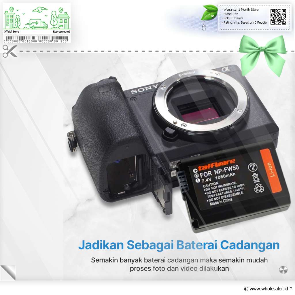 - 1 x Taffware Baterai Kamera NP-FW50 for Sony Alpha a6500 a6300 1080mAh