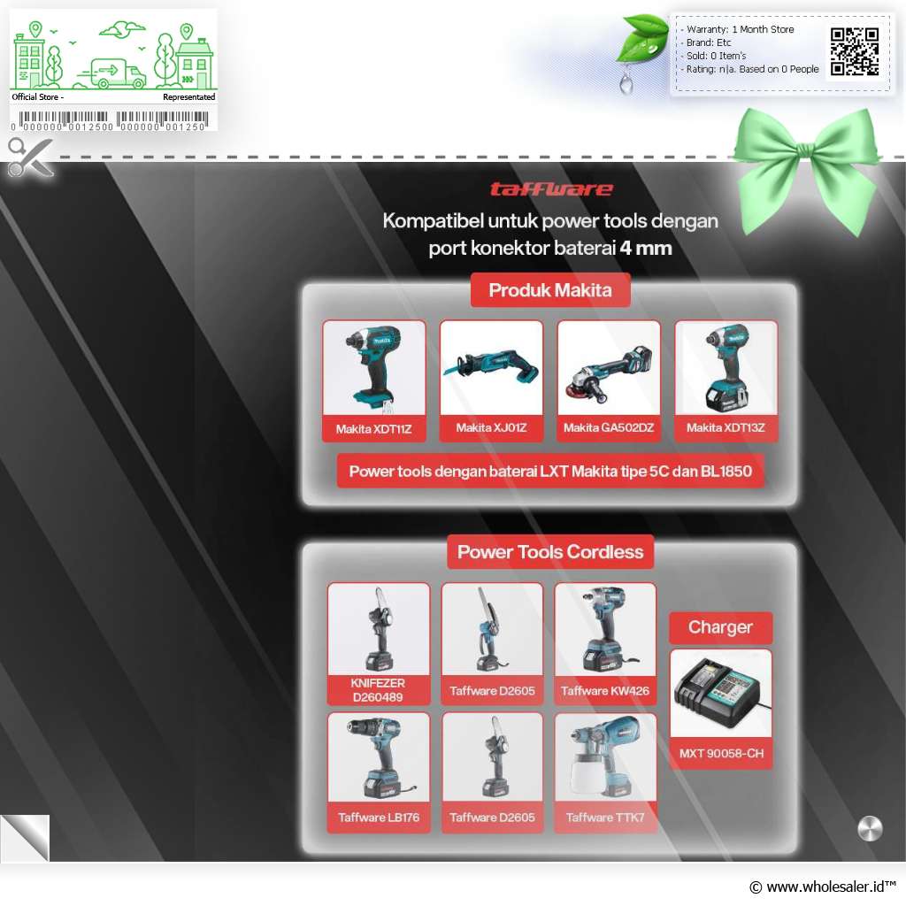 Kecocokan Power Tools | : | KNIFEZER D260489 Taffware D2605 Taffware KW426 Taffware LB176 Taffwater TTK7 OTOHEROES QH-10 SONGXIA YH24 Power Tools dengan Baterai LXT Makita tipe 5C dan BL1850 |