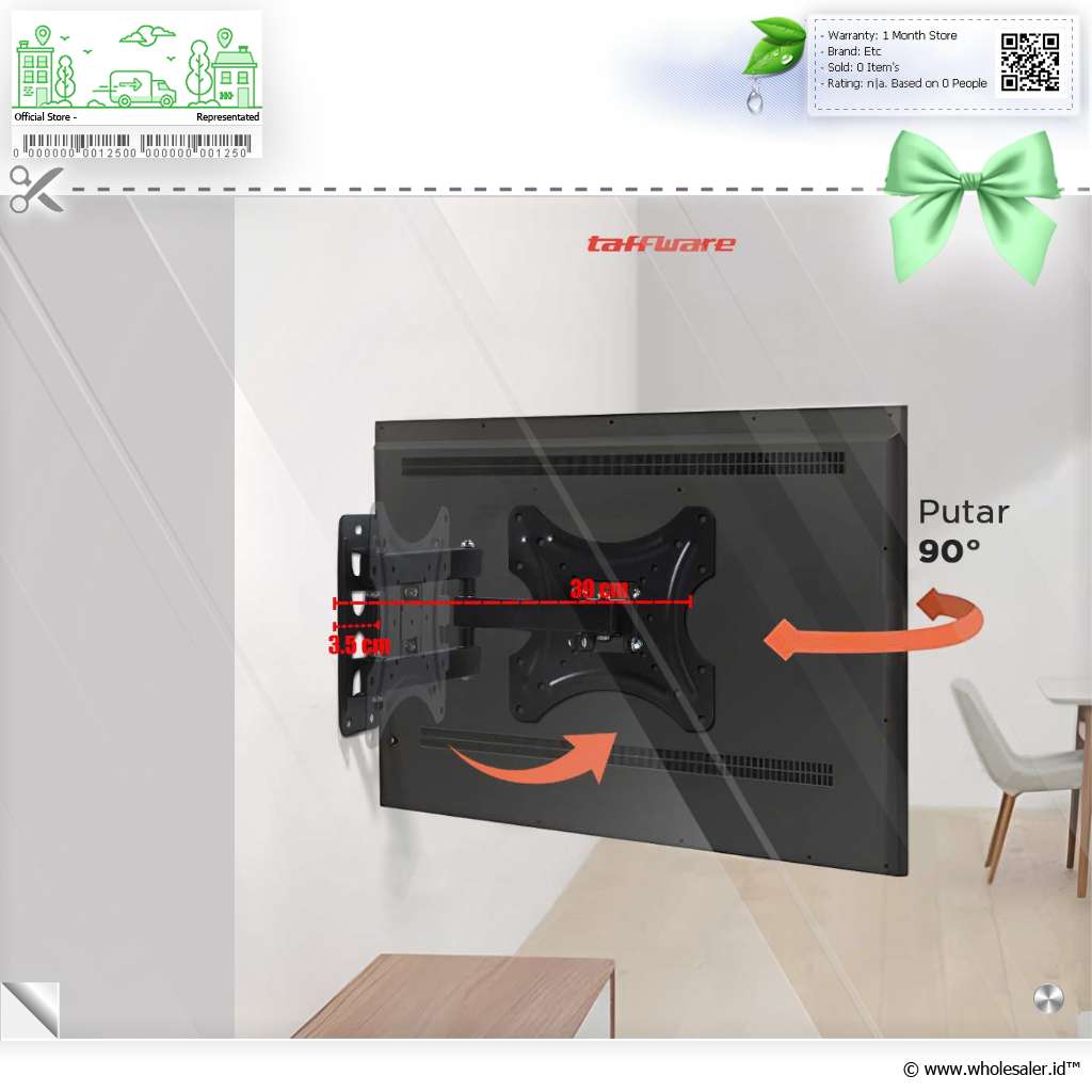 Buat waktu menonton TV lebih nyaman dan berkesan menggunakan bracket TV dari Taffware. Bracket dengan model gantung ini dapat dipasang di dinding yang praktis dan hemat tempat. Sudah menggunakan VESA, produk Taffware kompatibel dengan berbagai model TV dengan ukuran maksimal 42 Inch.