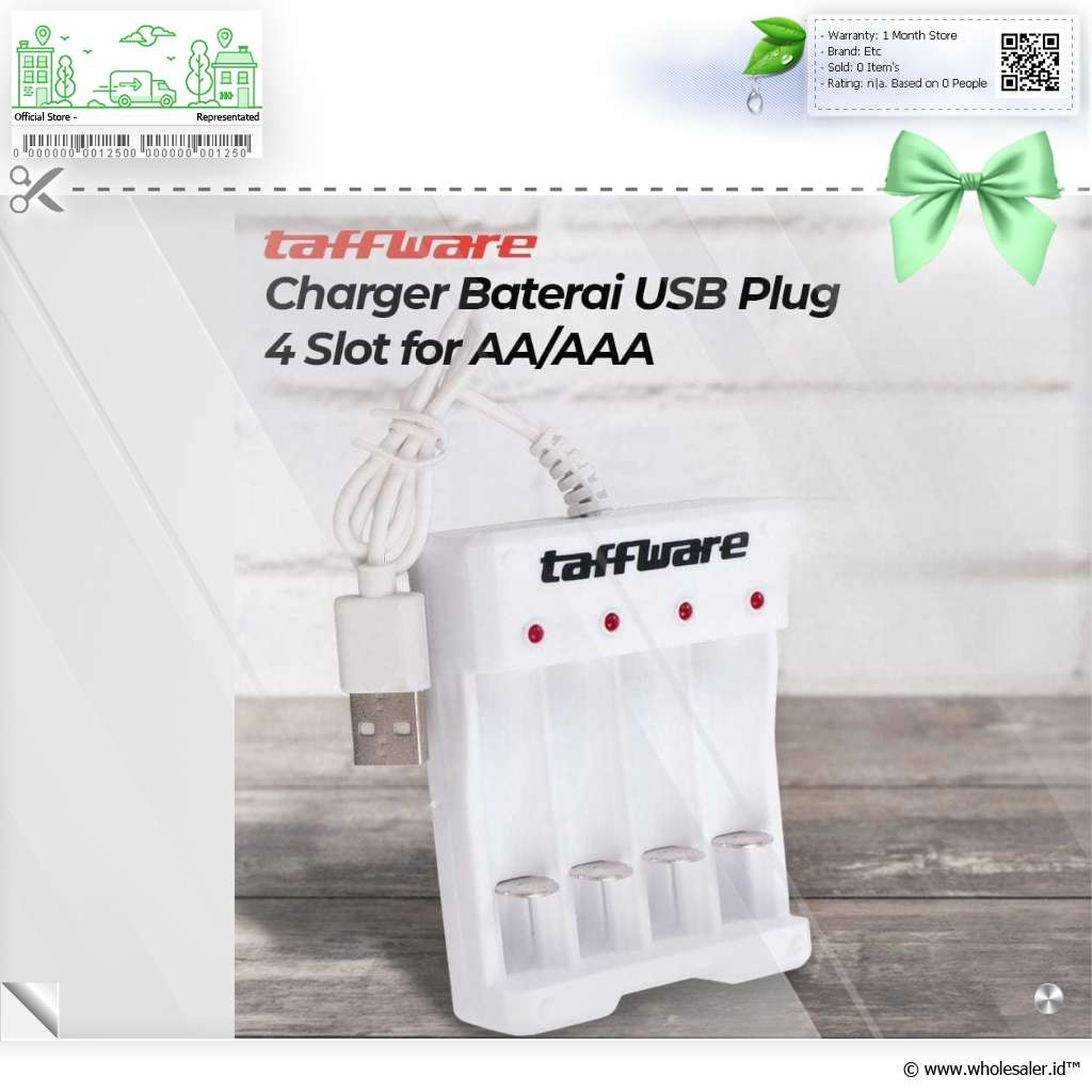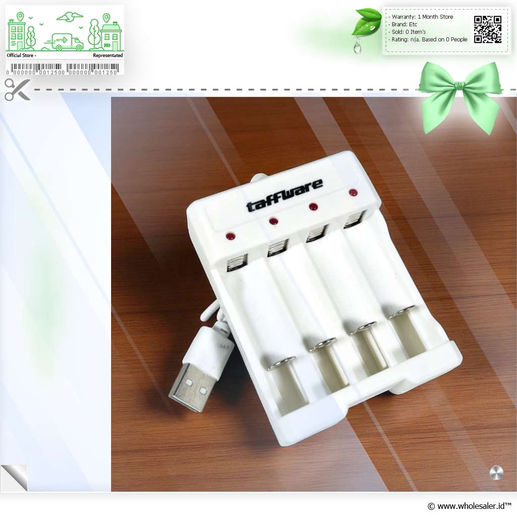 - 1 x Taffware Charger Baterai 4 Slot AA AAA Ni-MH Ni-CD USB Plug - B-04