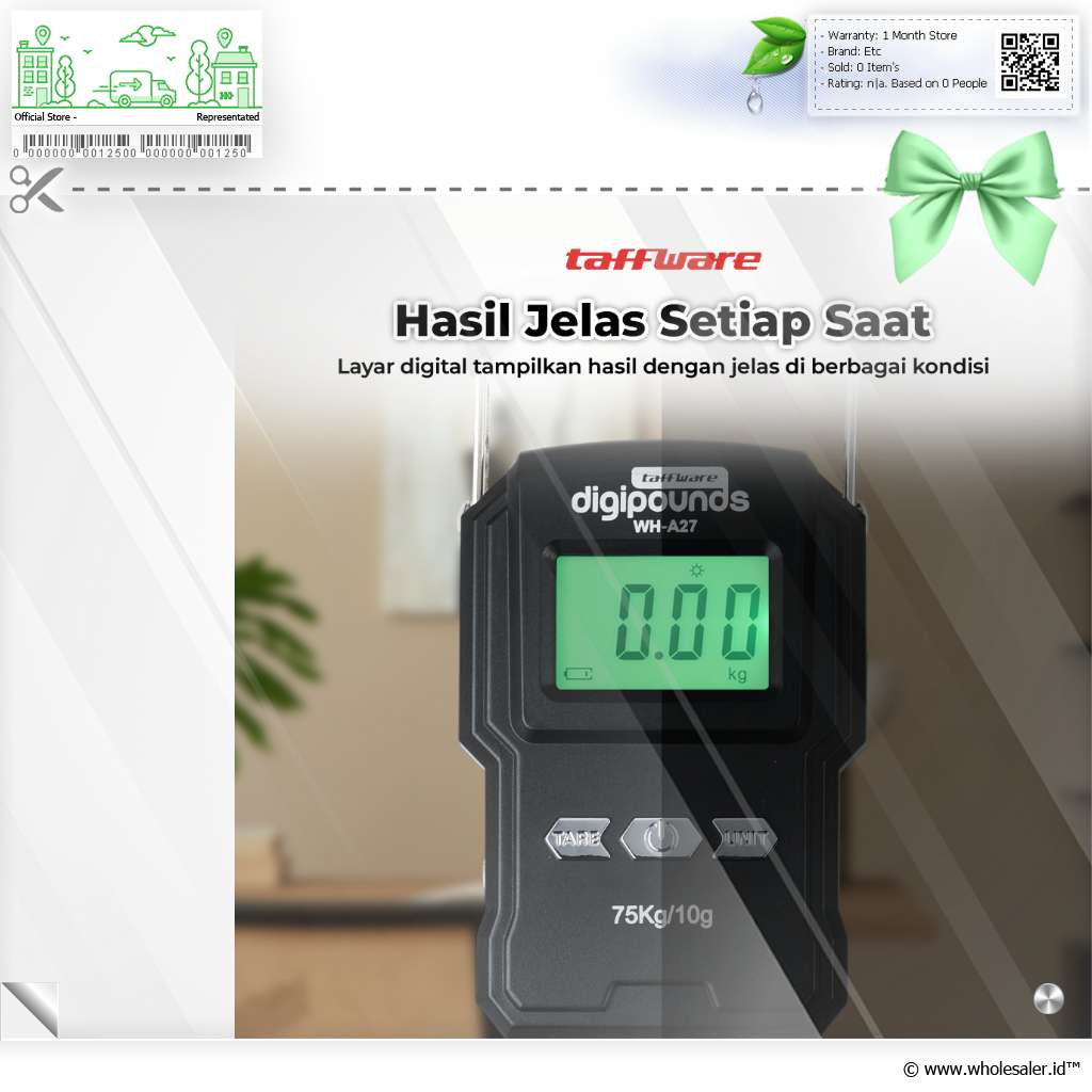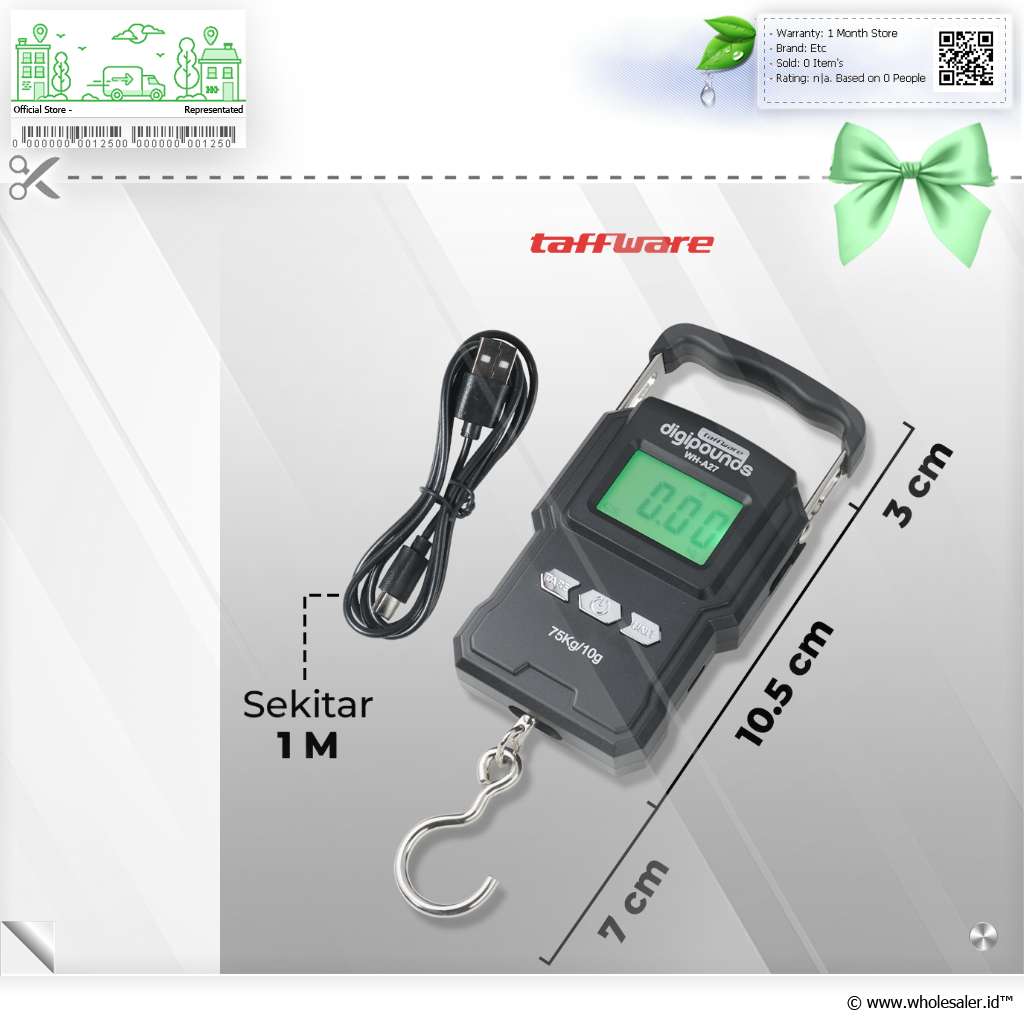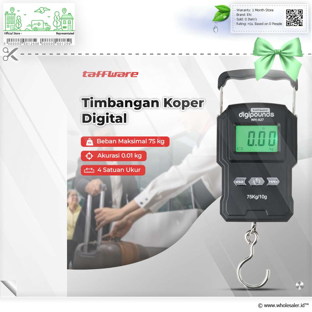 - 1 x Taffware Digipounds Timbangan Koper Tas Digital Scale 75kg 0.01kg - WH-A27