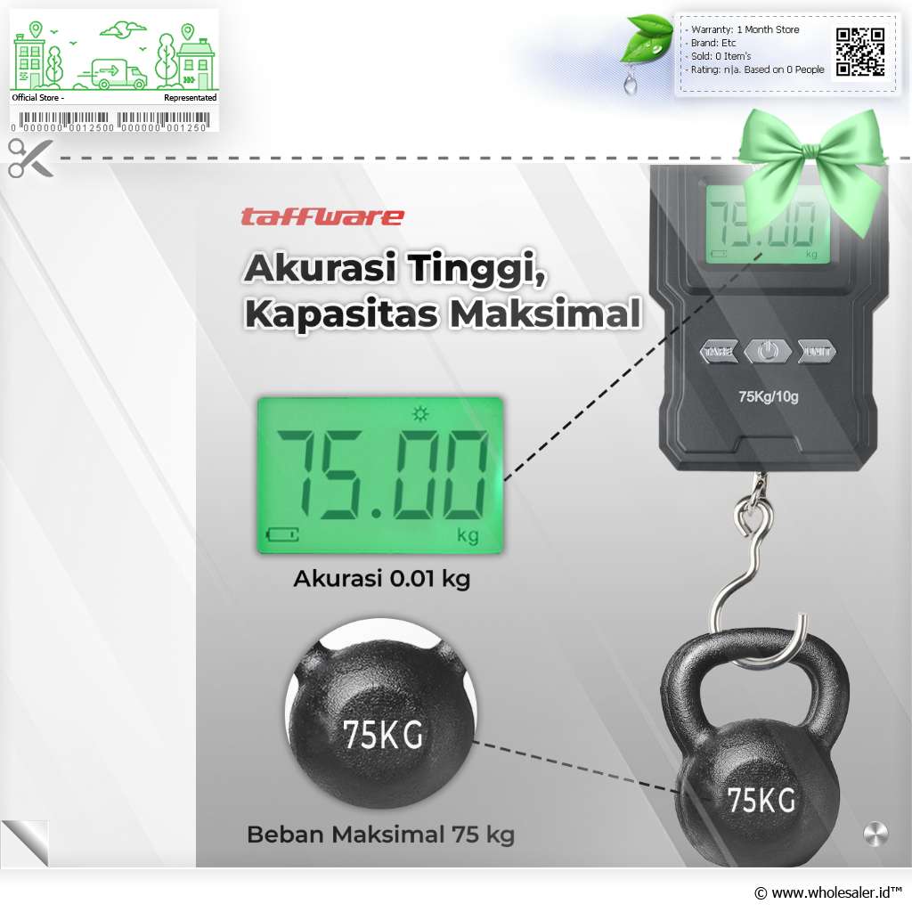 | Rentang Pengukuran | : | Akurasi 0.01 kg Rentang Pengukuran 10 g (0.01 kg) - 75 kg |