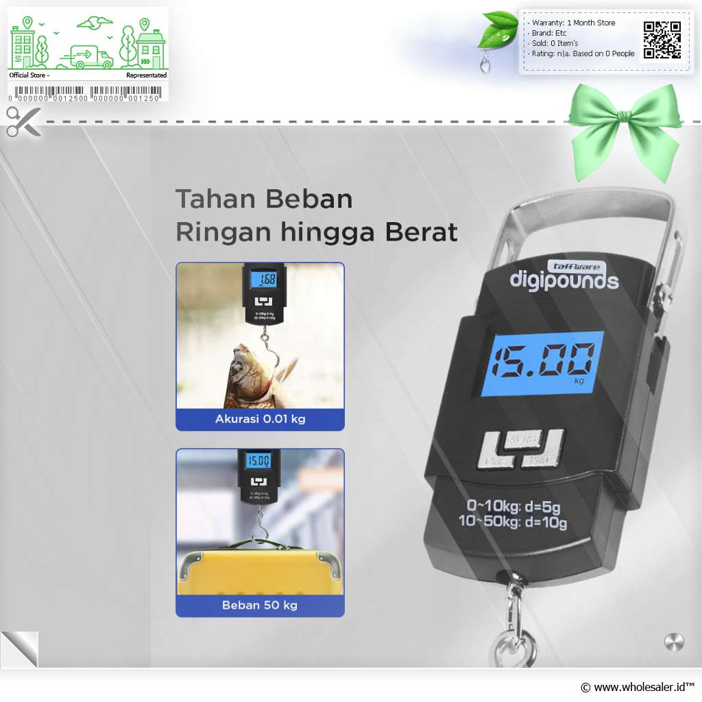 Bepergian kini lebih tenang tanpa takut kelebihan bagasi dengan Taffware Digipounds WH-A08. Timbangan gantung digital ini mampu menimbang beban hingga 50 kg dengan tingkat akurasi tinggi 0.01 kg, membantu Anda memastikan berat koper tetap sesuai batas maskapai. Memiliki desain ringkas dan ringan, timbangan ini mudah dibawa di saku atau tas saat traveling.