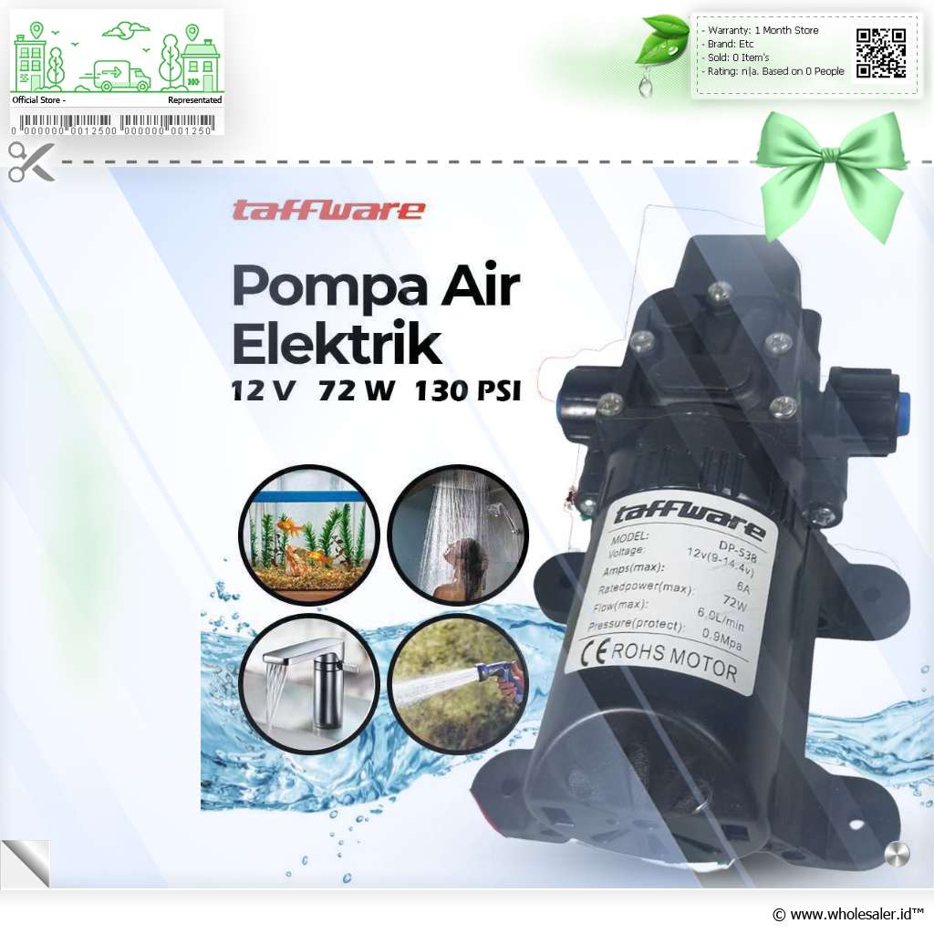 Butuh sistem pemompaan air yang efisien, andal, dan ringkasGunakan pompa air dari Taffware! Dengan tegangan 12 V, Anda sudah bisa menggunakan pompa air untuk berbagai kebutuhan. Aliran airnya cocok untuk berbagai keperluan yang lebih luas, mulai dari pengairan tanaman, akuarium, alat penyemprot, hingga keran dan wastafel.