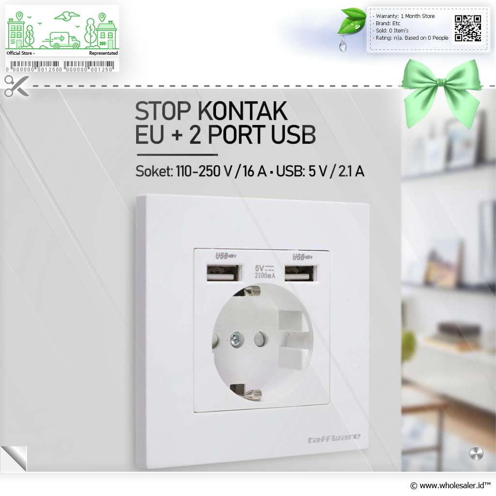 - 1 x Taffware Stop Kontak EU Colokan Listrik Dinding dan 2 Port USB 2100 mA - WS222