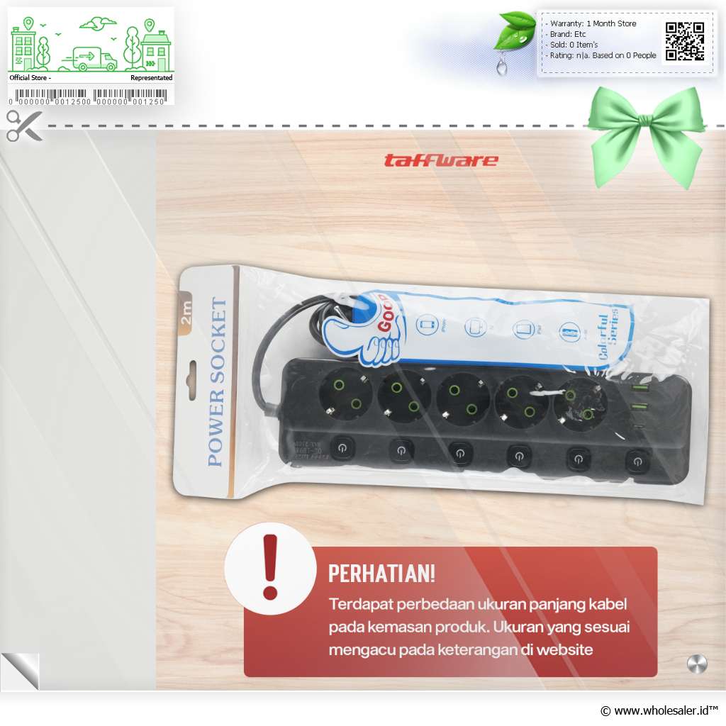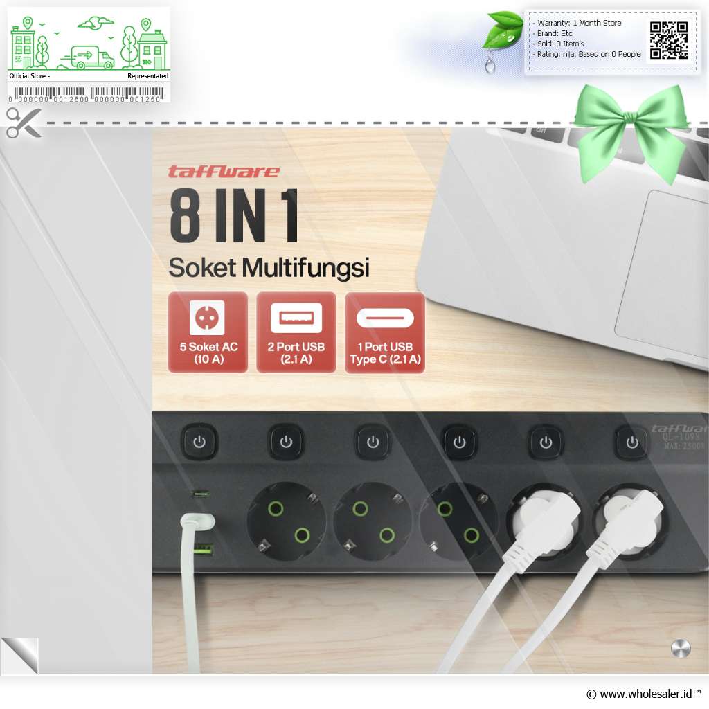 | Soket Multifungsi 8in1 Hadir sebagai produk 8in1 dengan 5 soket AC, 2 port USB, dan 1 Port USB Type C, stop kontak kabel dapat digunakan untuk menyalakan perangkat elektronik hingga mengisi daya smartphone. |