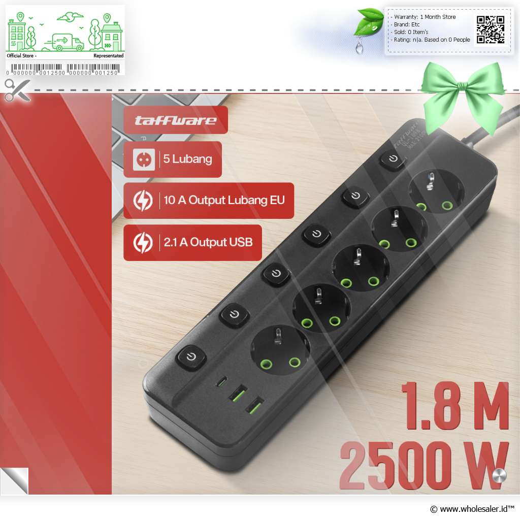 Menyalakan banyak perangkat elektronik sekaligus semakin praktis dengan stop kontak kabel Taffware. Menawarkan 8 dan 10 soket EU atau universal dan port USB dengan total output 2500 W cocok untuk berbagai kebutuhan. Semakin aman dengan tombol saklar untuk memutus arus listrik tanpa harus mencabut kabel.