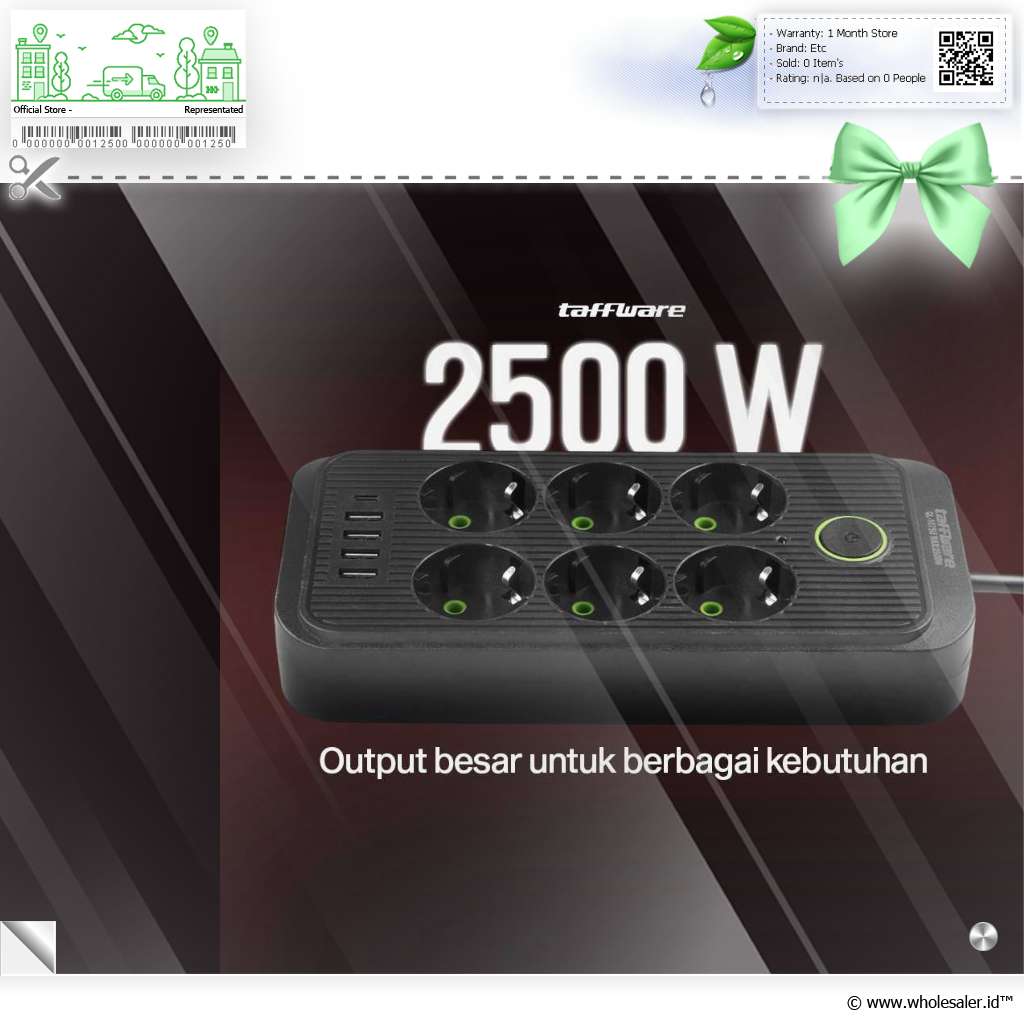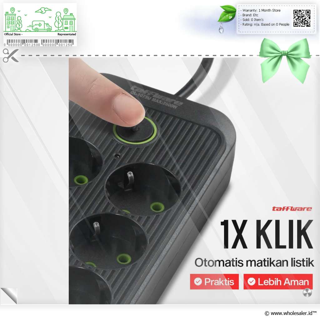 Menyalakan banyak perangkat elektronik sekaligus semakin praktis dengan stop kontak Taffware. Menawarkan 6 soket EU atau universal dan port USB dengan total output 2500 W cocok untuk berbagai kebutuhan. Semakin aman dengan tombol saklar untuk memutus arus listrik tanpa harus mencabut kabel.