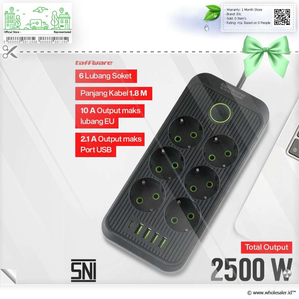 Informasi Produk Taffware Stop Kontak Kabel USB Type C 10A 110-250V 2500W 1.8M 6 Lubang - QL-1075U