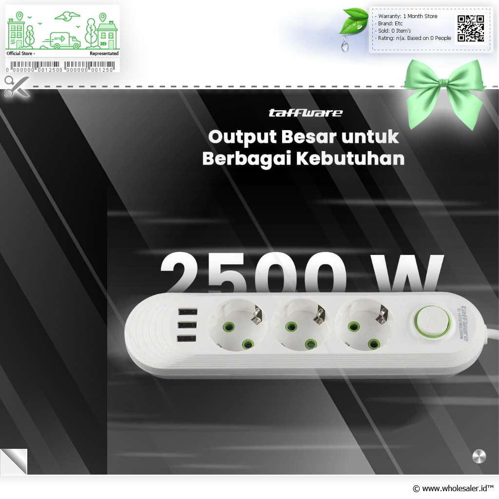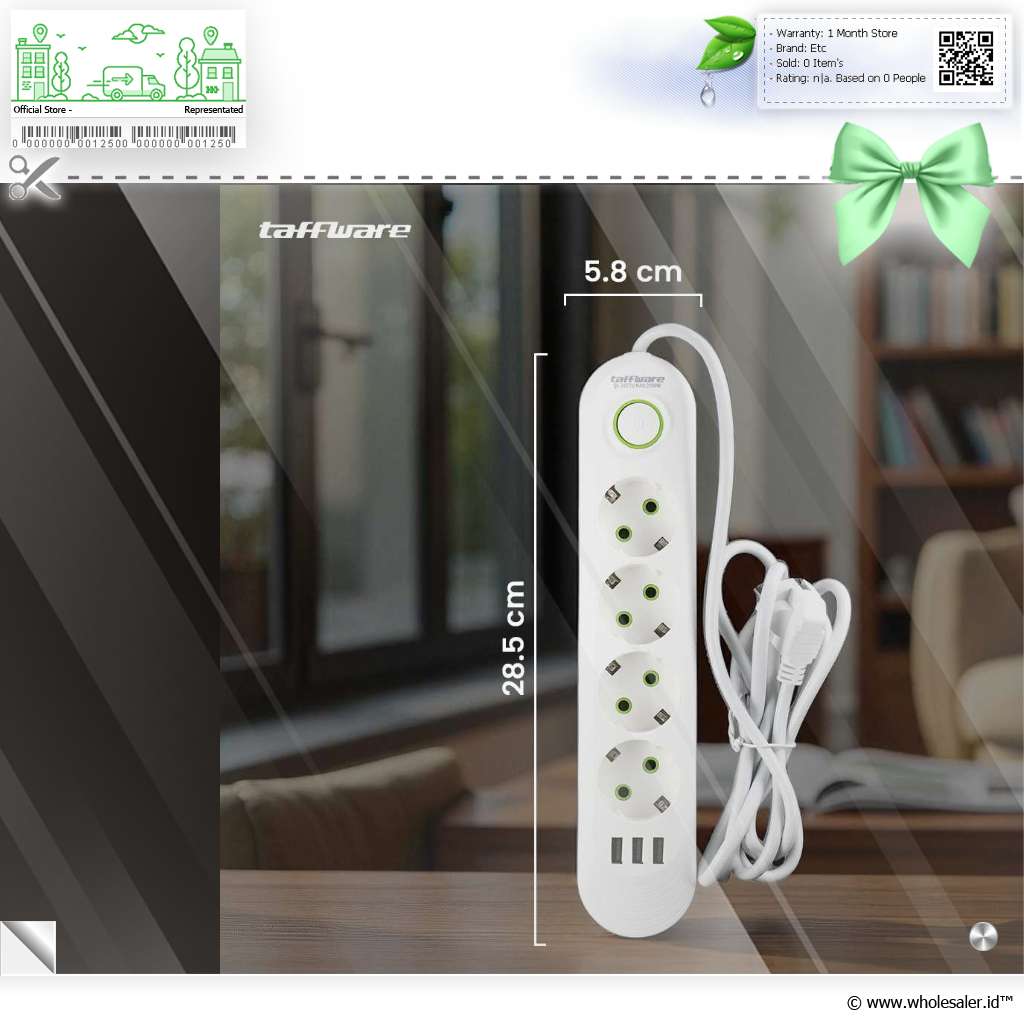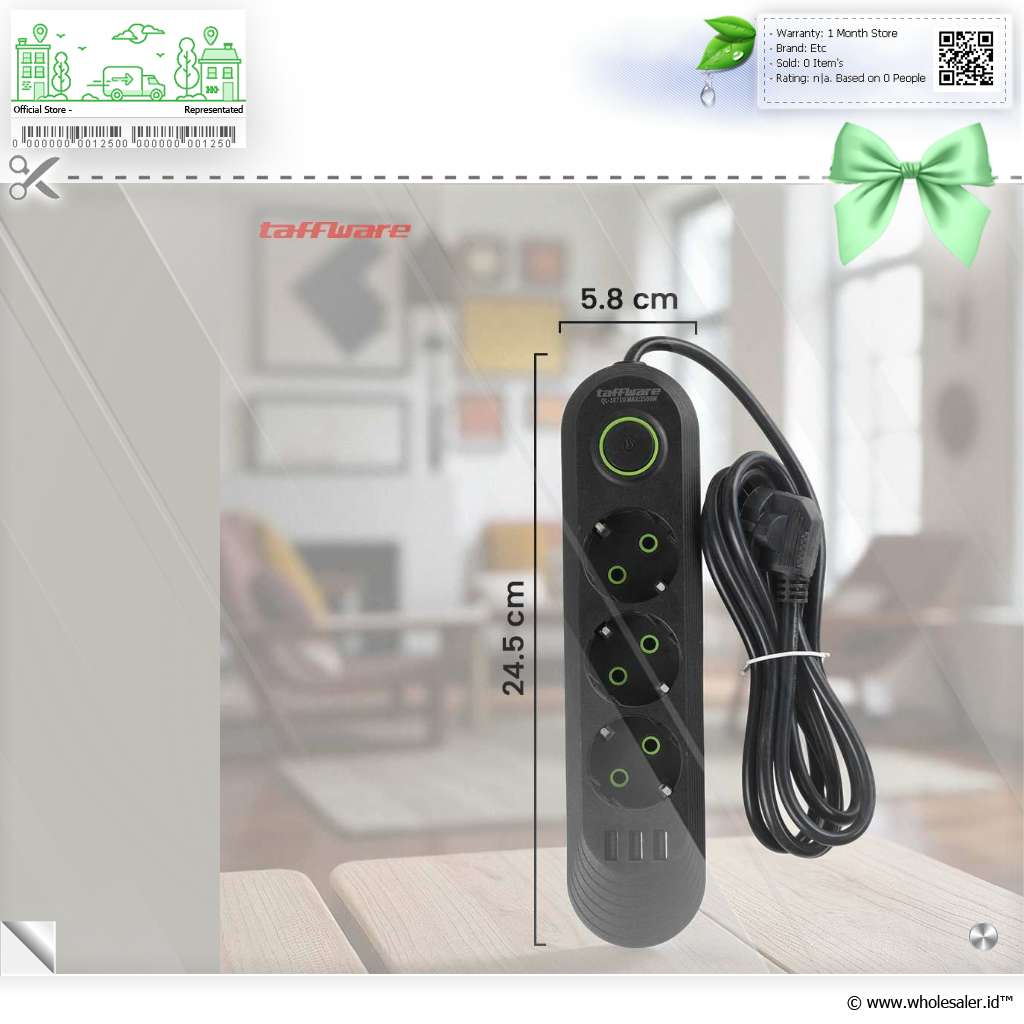 Menyalakan banyak perangkat elektronik sekaligus semakin praktis dengan stop kontak Taffware. Menawarkan 3 dan 4 soket EU atau universal dan port USB dengan total output 2500 W cocok untuk berbagai kebutuhan. Semakin aman dengan tombol saklar untuk memutus arus listrik tanpa harus mencabut kabel.