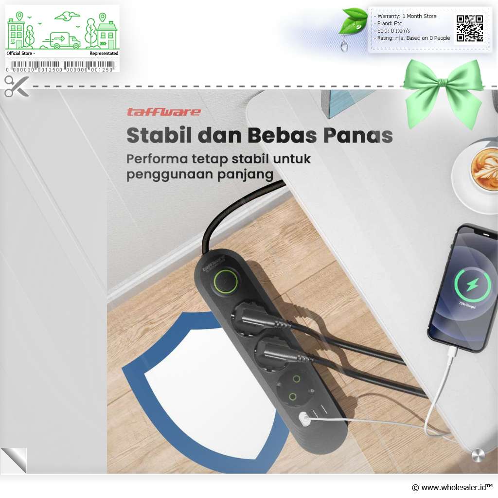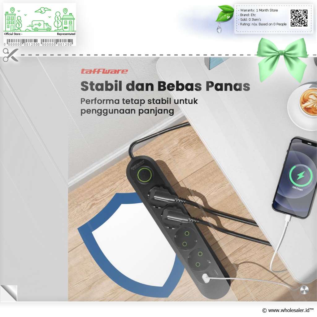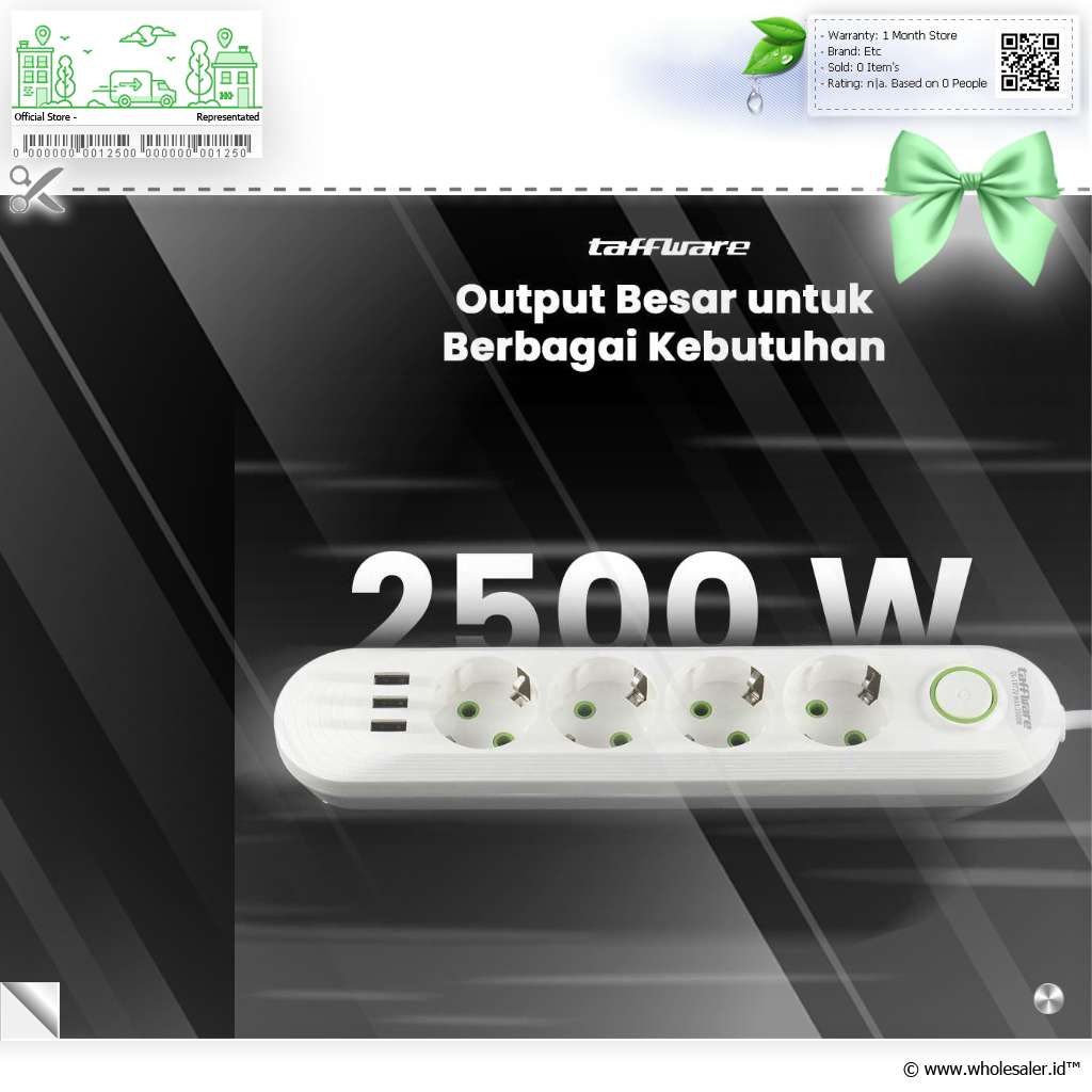 Menyalakan banyak perangkat elektronik sekaligus semakin praktis dengan stop kontak Taffware. Menawarkan 3 dan 4 soket EU atau universal dan port USB dengan total output 2500 W cocok untuk berbagai kebutuhan. Semakin aman dengan tombol saklar untuk memutus arus listrik tanpa harus mencabut kabel.