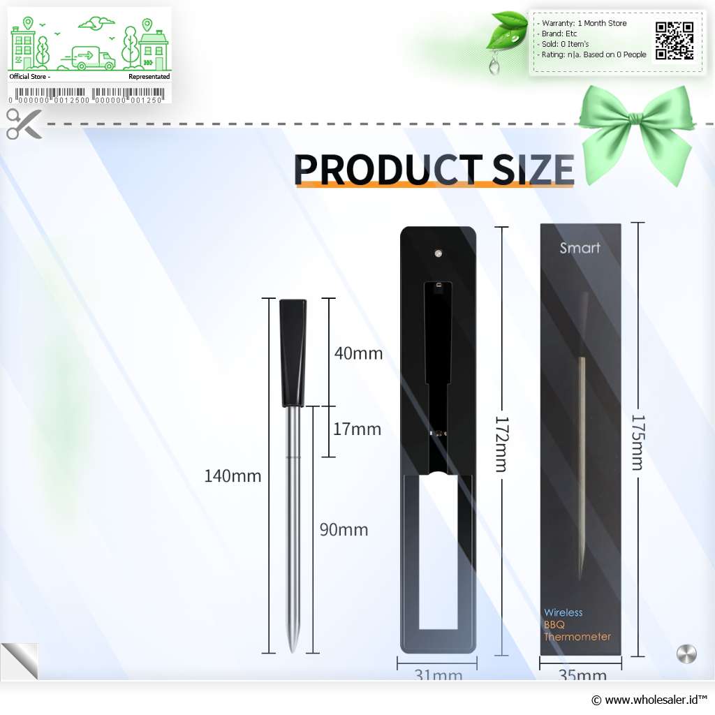 | Dimensi | : | Keseluruhan 172 x 31 mm Panjang Termometer 140 mm Panjang Besi Pengukuran 90 mm |