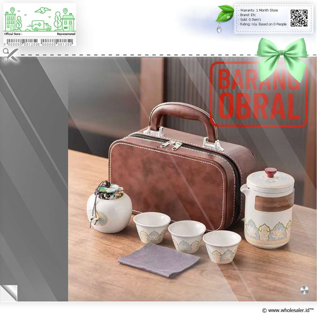 Set teh ini merupakan paket lengkap yang berisi 1 teko keramik, 3 cangkir kecil, 1 toples teh, 1 kain microfiber, dan 1 tas jinjing eksklusif, semuanya tersimpan rapi dalam satu kemasan praktis. Didesain portabel dengan tas kulit PU berwarna cokelat elegan, lengkap dengan ritsleting dan pegangan yang kuat, set ini cocok dibawa saat traveling, piknik, atau ke kantor.
