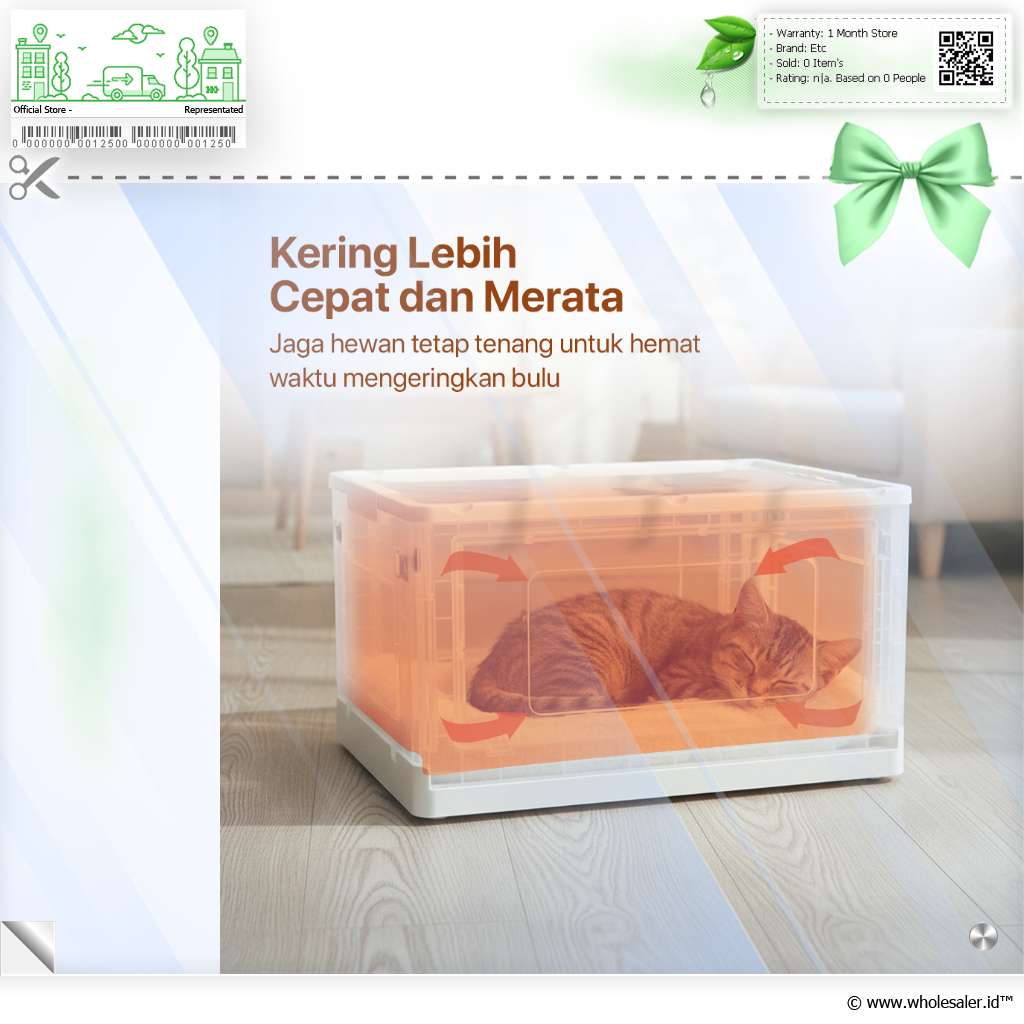 | Nyaman dan Bebas Pengap Lubang ventilasi di bagian samping drying box memastikan anabul dapat bernapas dengan nyaman selama proses pengeringan bulu. Sirkulasi udara yang terjaga membuat bagian dalam box bebas pengap. |