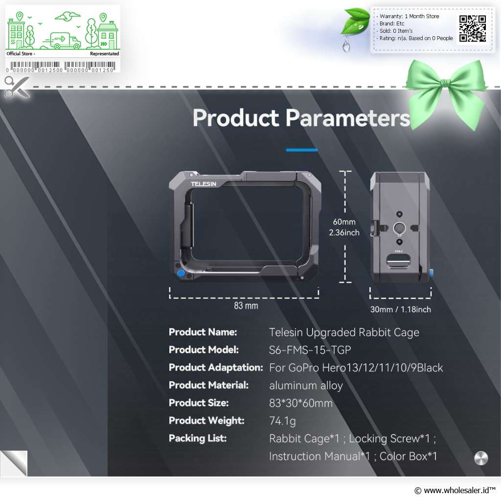 - 1 x TELESIN Case Pelindung Kamera Aksi GoPro Hero 9 to 13 Protective Frame - S6-FMS-15-TGP