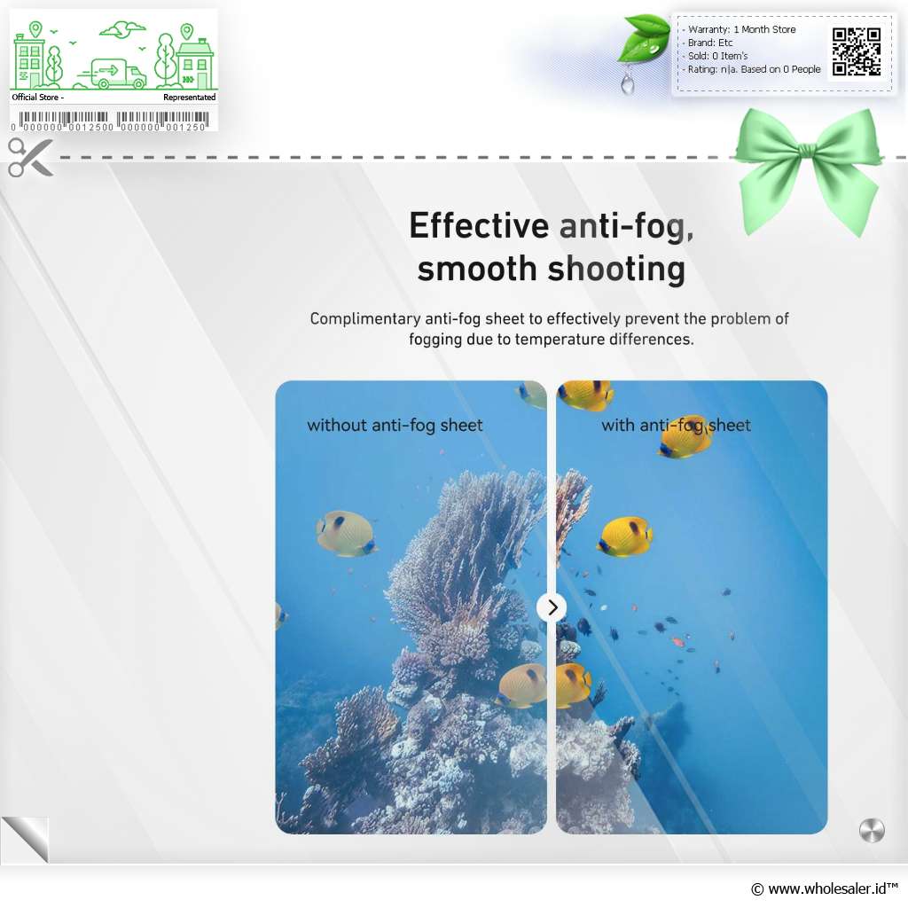 | Dapatkan Hasil Gambar yang Jernih Anda mungkin sering mendapatkan hasil yang tak maksimal ketika merekam di dalam air. Hadir dengan tempered glass yang membuat kamera mampu menangkap berbagai warna dengan jernih. Casing anti air sudah dilengkapi dengan lembaran anti-fog yang akan membantu mencegah terbentuknya embun akibat perubahan suhu. |