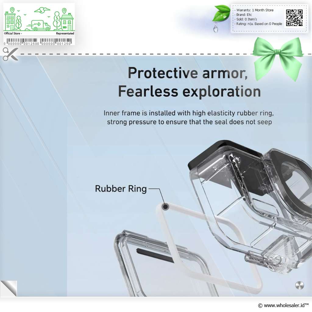 | Perlindungan yang Maksimal Selain perlindungan terhadap air, casing anti air juga mampu melindungi kamera DJI Osmo Action 6 Anda dari debu hingga kotoran. Materialnya yang tahan banting mampu mencegah kamera dari benturan dan goresan. |
