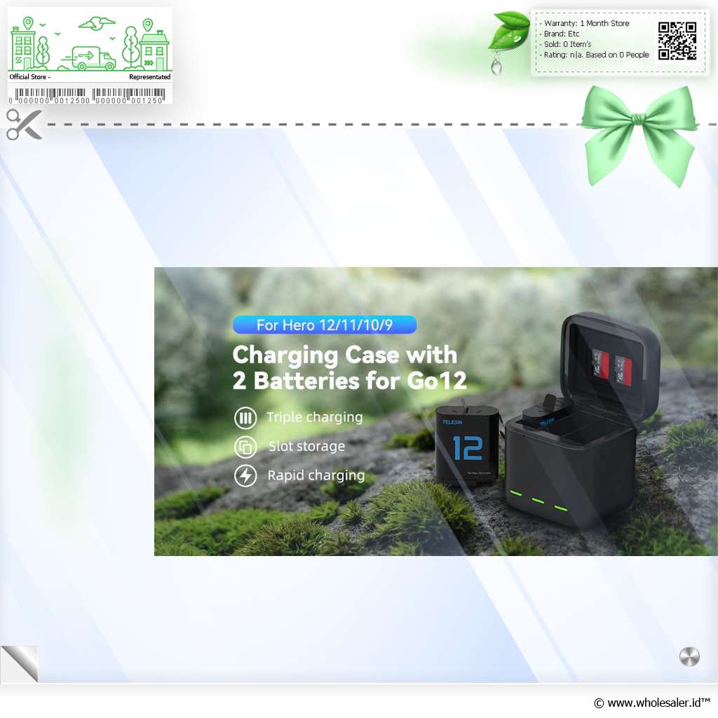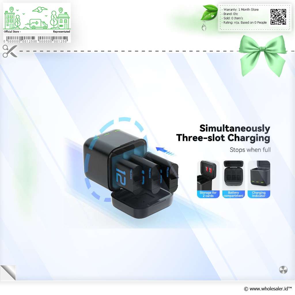 - 1 x TELESIN Charger Baterai 3 Slot GoPro Hero 9/10/11/12