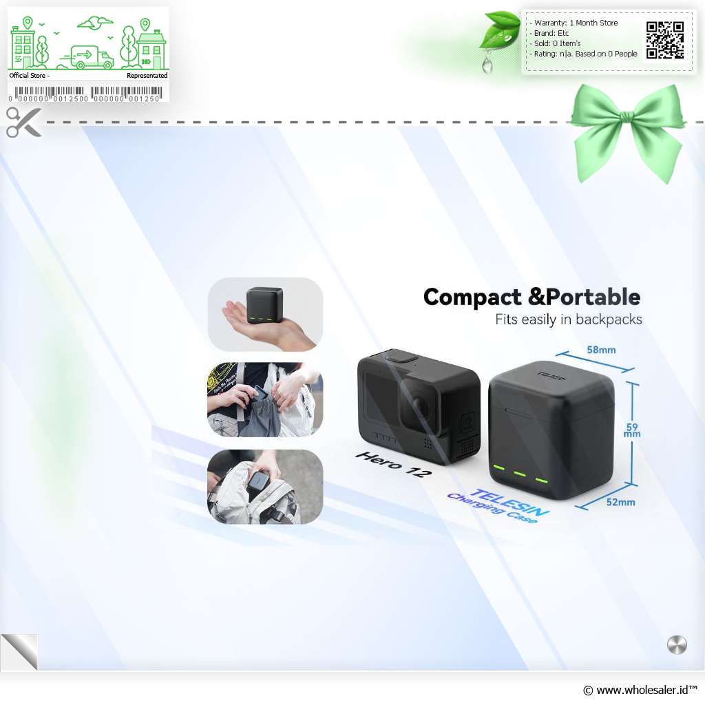 Lain-lain | : | Kompatibiltas Charger Support Baterai GoPro Hero 9, 10, 11, dan 12 Kompatibilitas Baterai Bawaan Untuk GoPro Hero 12 |