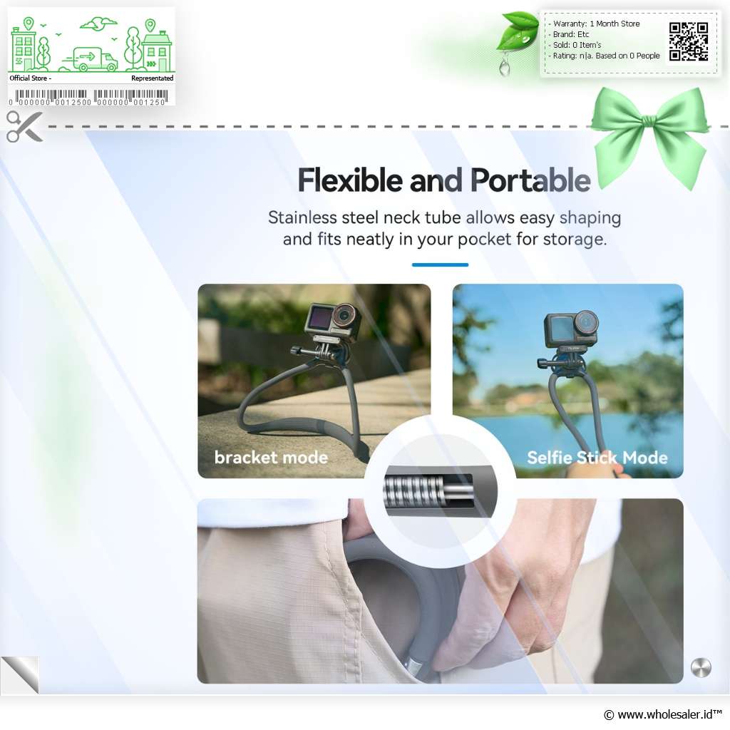 | Sudut Pandang Mata yang Stabil Rekam aktivitas dari perspektif pengguna dengan neck mount fleksibel. Tabung gooseneck sepanjang 600 mm memungkinkan penyesuaian posisi kamera sesuai kebutuhan. Cocok untuk dokumentasi hands-free saat bersepeda, memancing, atau membuat konten POV yang immersive. |