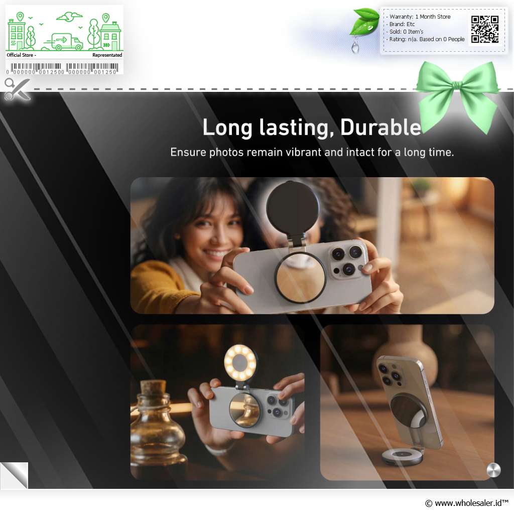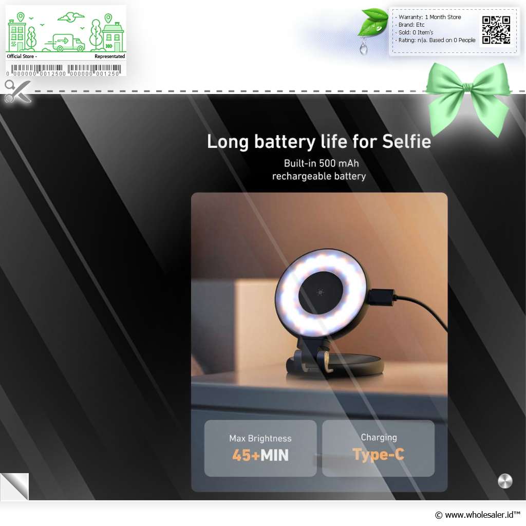 | Pencahayaan Melingkar dan Merata Seperti namanya, selife ring light ini memiliki desain melingkar yang memungkinkan pencahayaan merata dari segala arah. Desain ini memastikan hasil gambar atau video lebih profesional dan estetis, sempurna untuk berbagai kebutuhan konten, mulai dari vlogging, live streaming, hingga video call. |