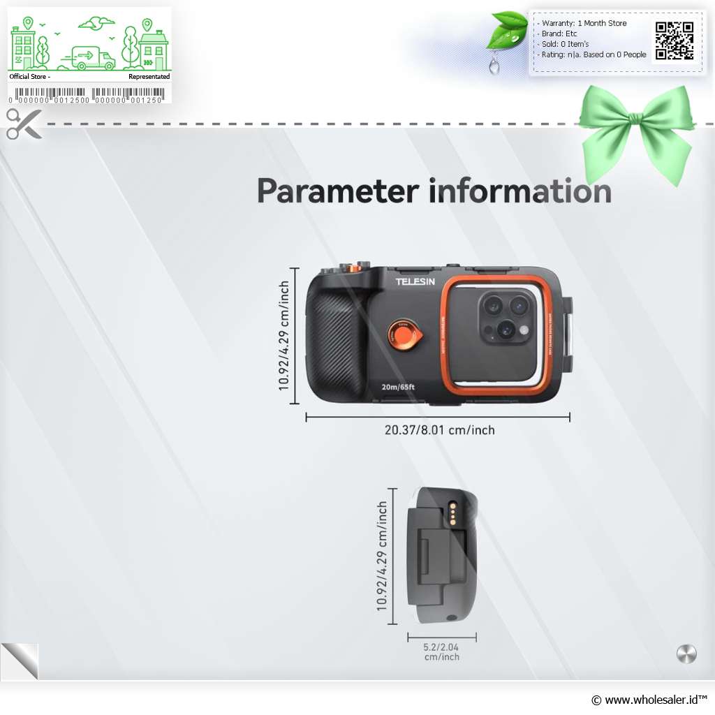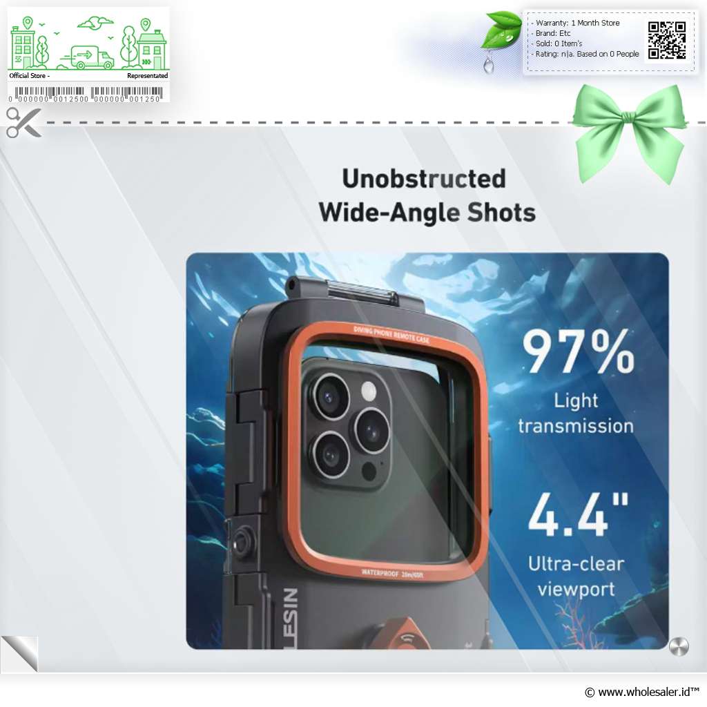 Lensa yang digunakan juga tebal dan jernih, aman untuk diving kedalaman 20 M. Kompatibel untuk berbagai smartphone hingga ukuran 6.9 Inch.