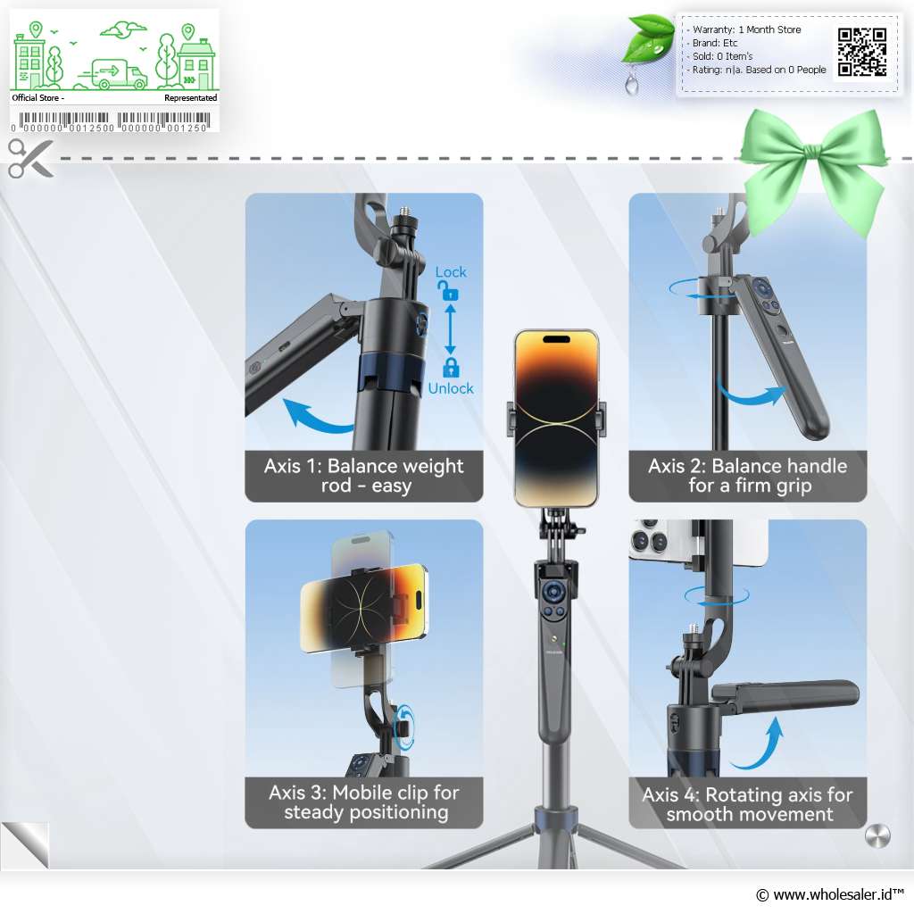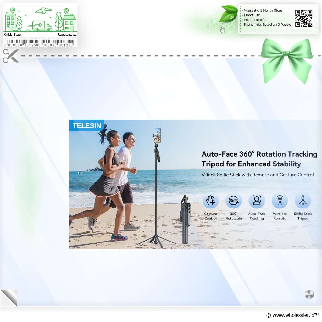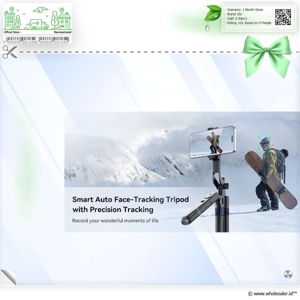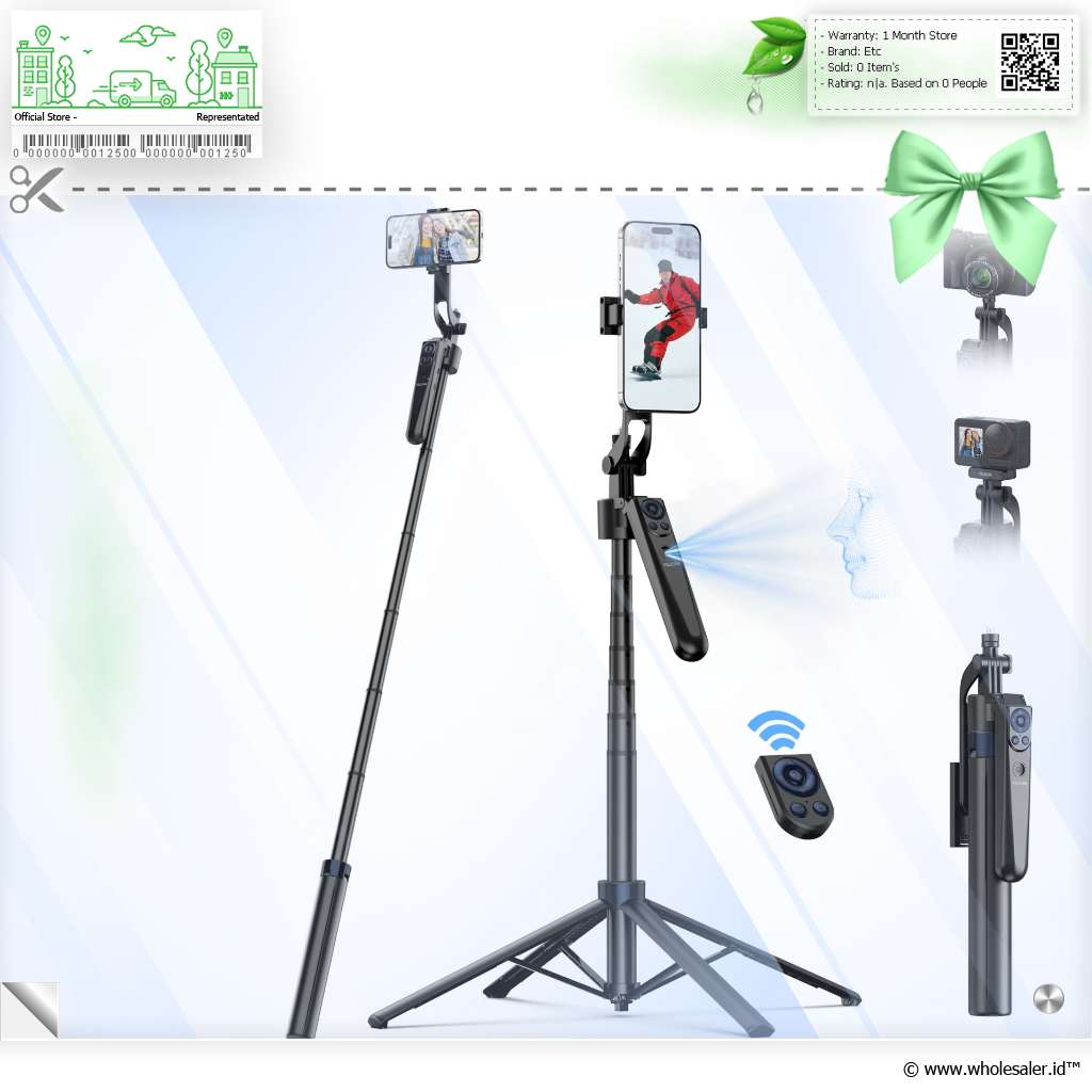 Tripod pintar dengan fitur auto tracking 360 dan remote Bluetooth bawaan. Cocok untuk vlog, live, dan konten kreatif. Tinggi hingga 1.8 M, kompatibel dengan HP, GoPro, dan kamera mirrorless.