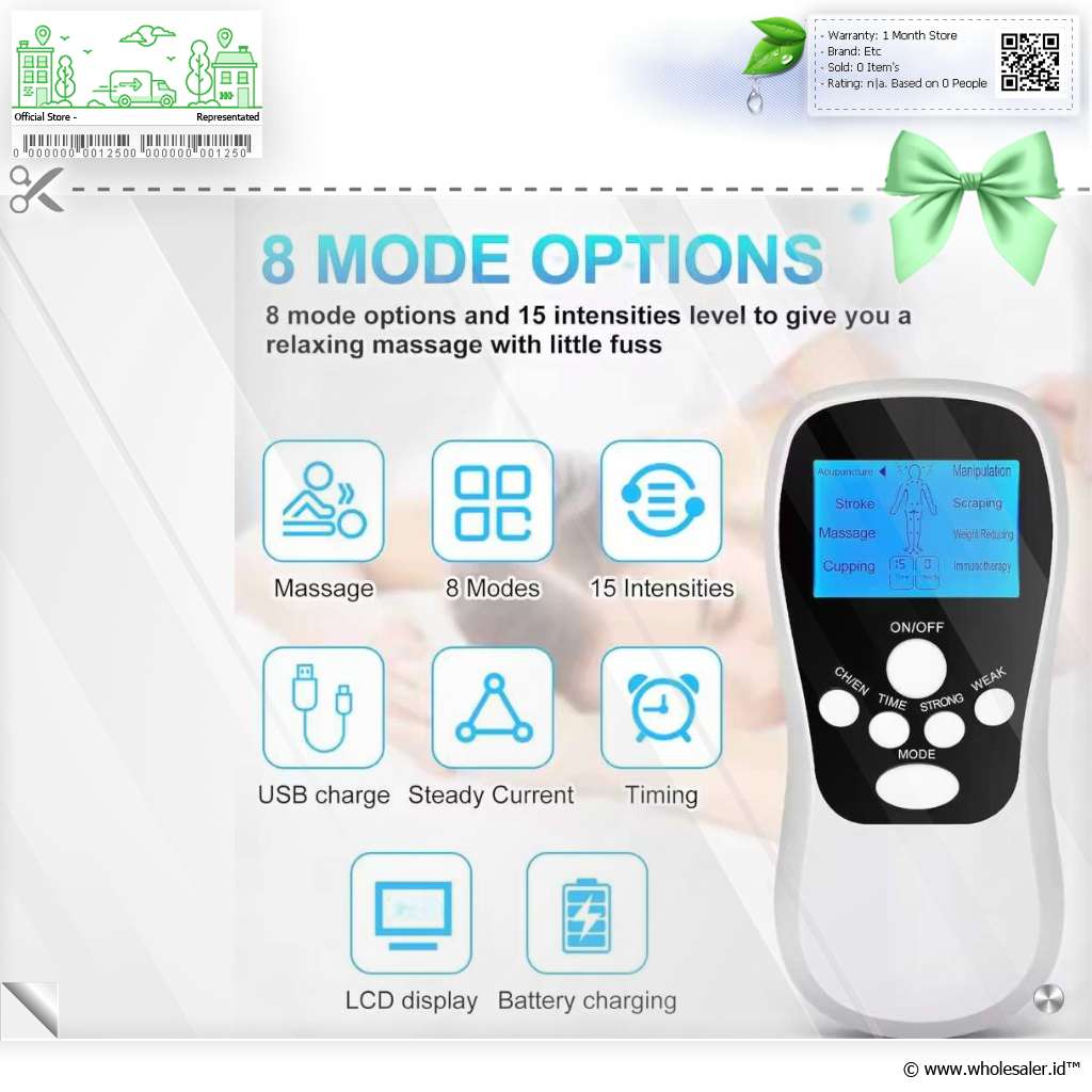 | Memiliki 8 Mode dan 15 Level Intensitas TENS menghadirkan alat pijat mini dengan 8 mode pijatan. |