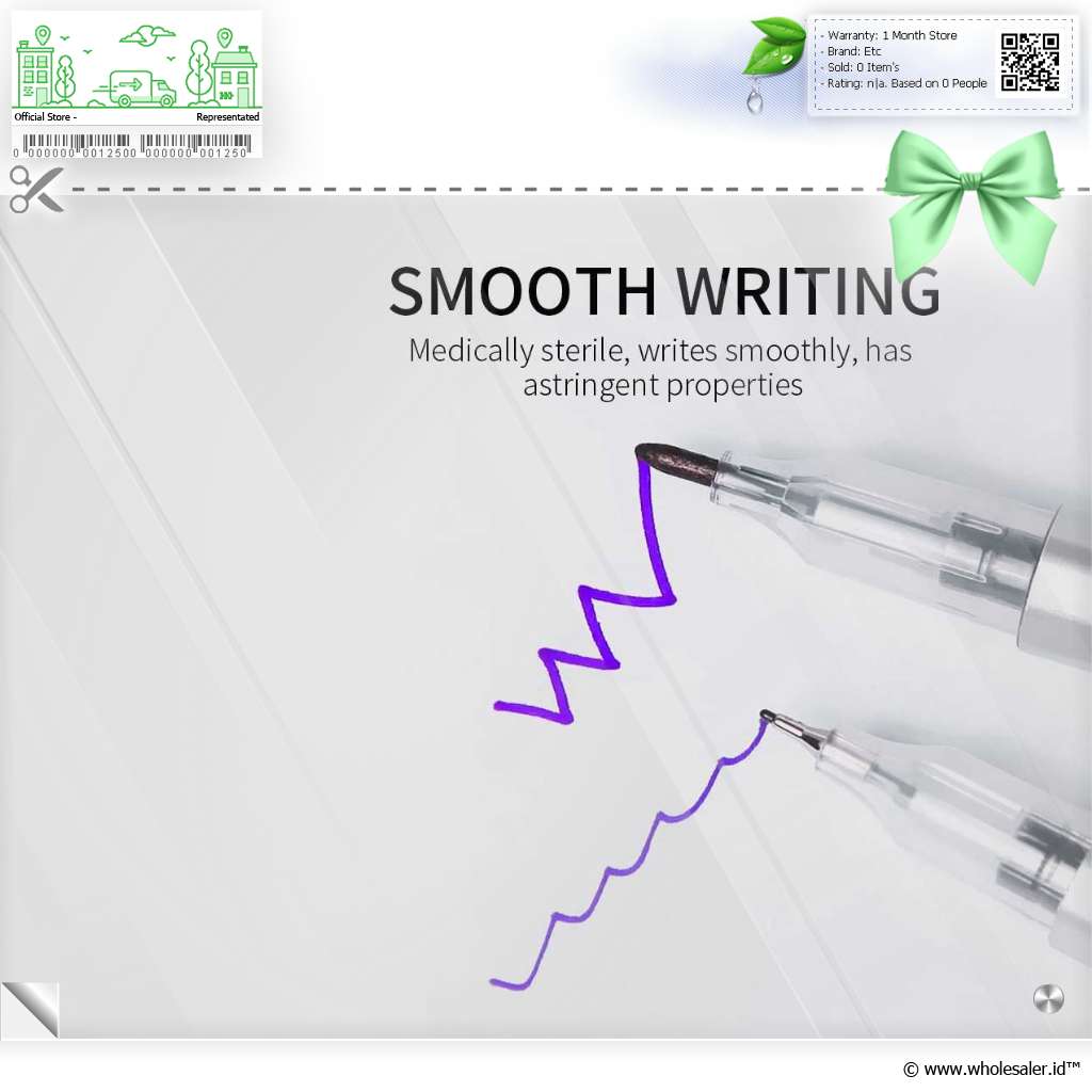 | Tinta Aman dan Steril Tinta yang digunakan pada spidol ini hypoallergenic, memastikan aman untuk semua jenis kulit, termasuk kulit sensitif. Produk ini bebas racun, steril, dan dirancang untuk cepat kering. |