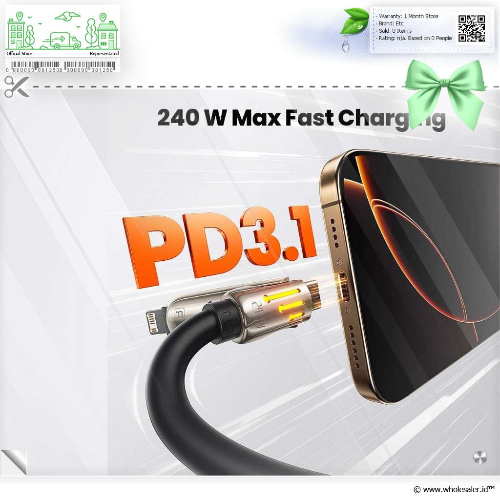 Mendukung Pengisian Fast Charging Tak perlu menunggu lama untuk mengisi daya ponsel karena kabel data Toocki dibekali dengan teknologi pengisian cepat PD 3.1 dengan dukungan daya 240 W. Mampu mengisi daya iPhone 16 Pro Max sebanyak 56% dalam 30 menit, Samsung S24 Ultra 66% dalam 30 menit, iPas Pro 11 Inch 68% dalam 60 menit, dan mengisi daya penuh MacBook Air dalam 90 menit. |
