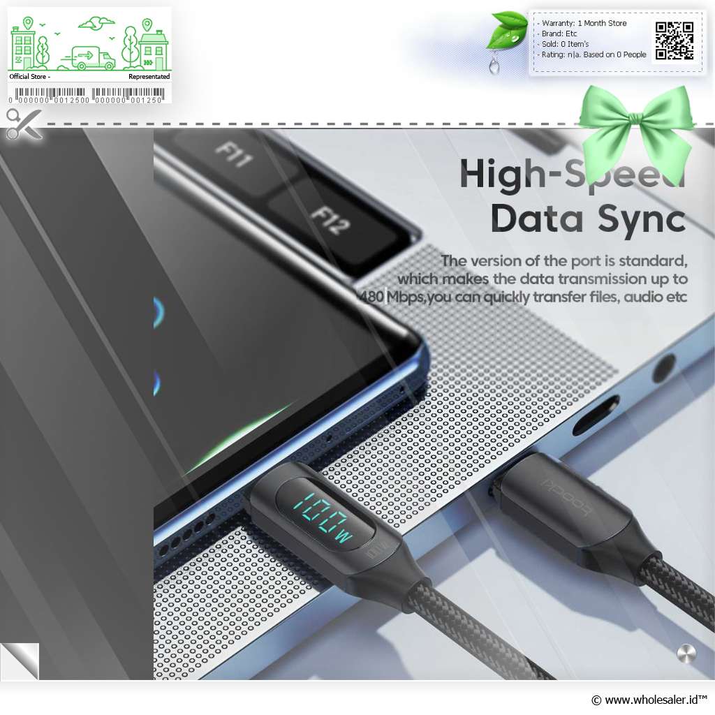 Informasi Produk Toocki Kabel Data Type-C to Type-C Fast Charging LED Display 5A 100W - TQ-X03