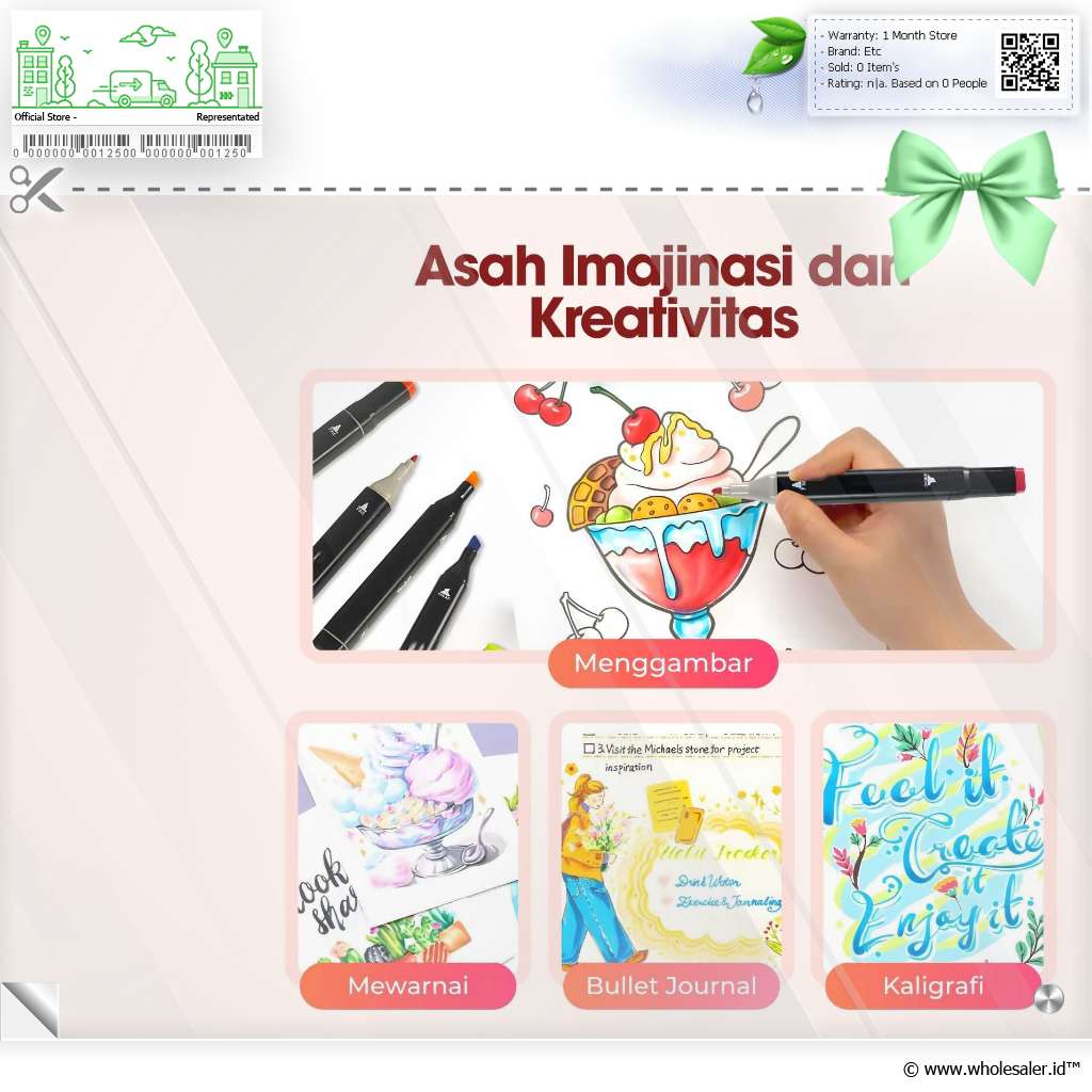 Buat gambar menarik dengan aneka warna menarik menggunakan spidol dual tip dari Touch Juchen. 120 Pilihan warna buat hasil gambar lebih hidup dan dinamis. Dual tip dengan ukuran berbeda cocok untuk mewarnai hingga membuat detail rumit tanpa masalah.