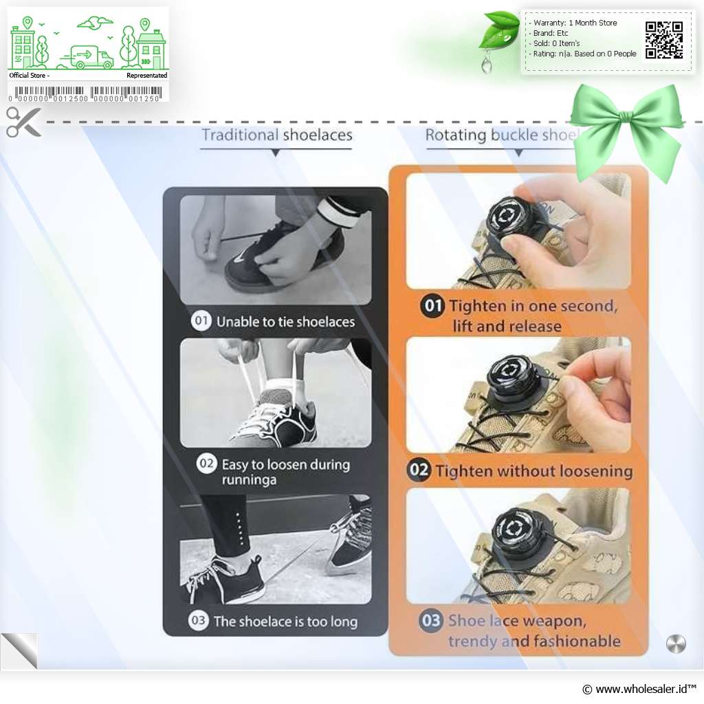 | Cocok untuk Segala Jenis Sepatu dan Aktivitas Desain serbagunanya membuat tali sepatu putar ini dapat digunakan pada berbagai jenis sepatu baik kasual, formal, maupun sepatu olahraga. Kepraktisannya menjadikannya pilihan ideal untuk aktivitas yang membutuhkan kecepatan, kemudahan, dan kenyamanan sepanjang hari. |