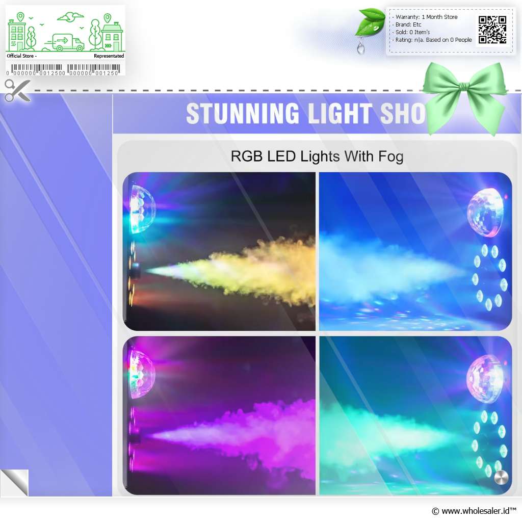 | 3 Efek Menakjubkan dalam Satu Alat Mesin ini menggabungkan efek semprotan asap, bola lampu RGB, dan pencahayaan warna-warni untuk menghadirkan atmosfer panggung yang spektakuler. Asap lembut yang dihasilkan berpadu dengan kilauan warna dari bola disko dan LED di bagian depan, menciptakan tampilan visual yang megah dan dinamis. |
