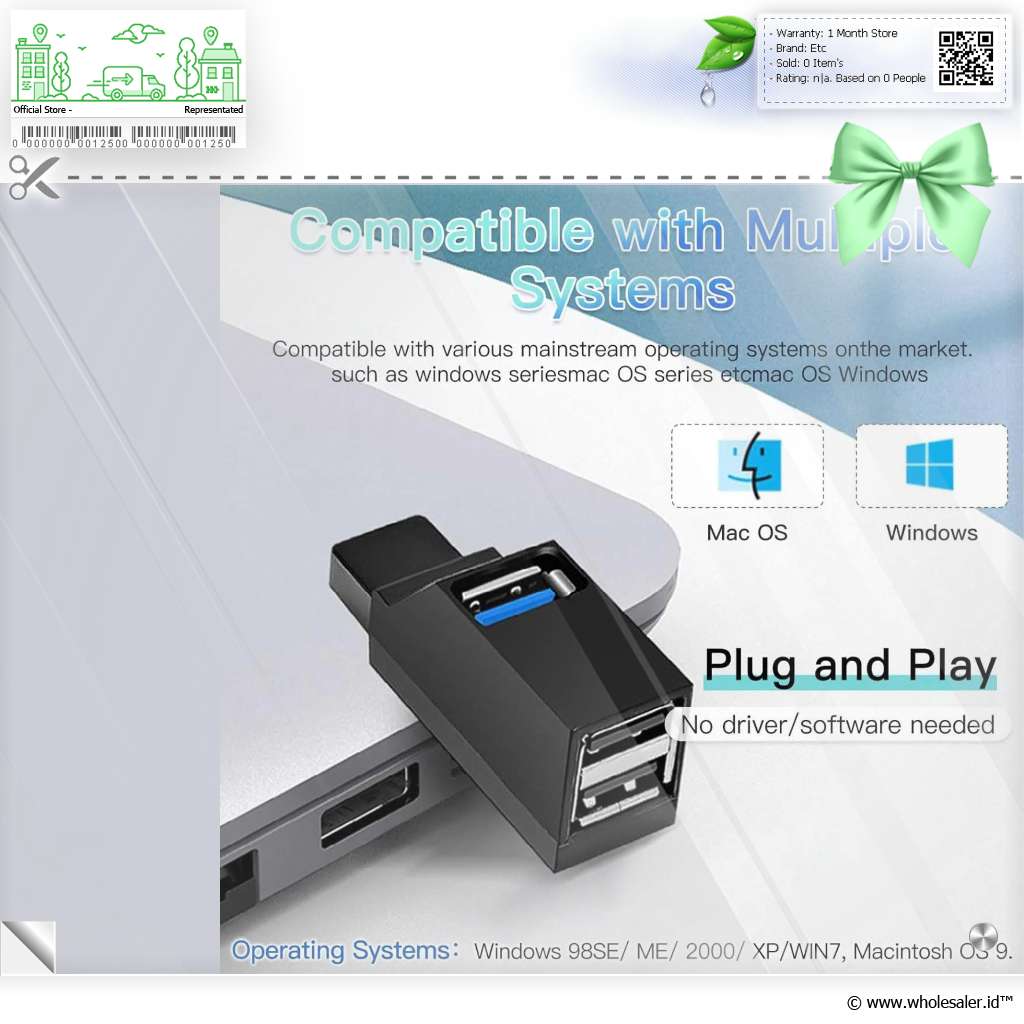USB hub ini memiliki 3 port yang bisa digunakan untuk 3 perangkat berbeda. Hadir dengan desain yang minimalis sehingga mudah dibawa ke mana saja. Penggunaan USB hub ini sangat mudah tanpa memerlukan driver untuk intalasi.