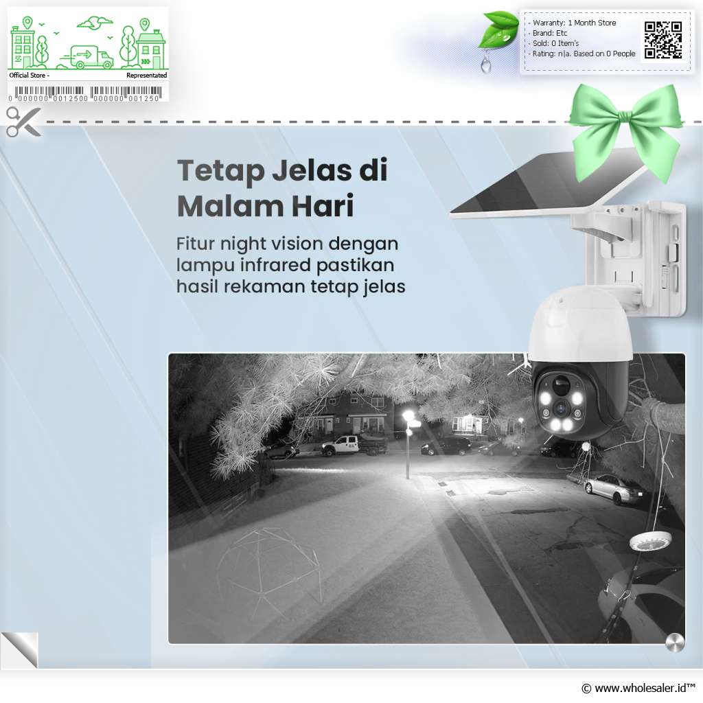 | Isi Daya Otomatis Kamera CCTV ini dilengkapi solar panel yang dapat mengisi daya secara otomatis di siang hari. Pasang pada area yang terkanar sinar matahari langsung agar dapat mengisi daya dengan maksimal. |
