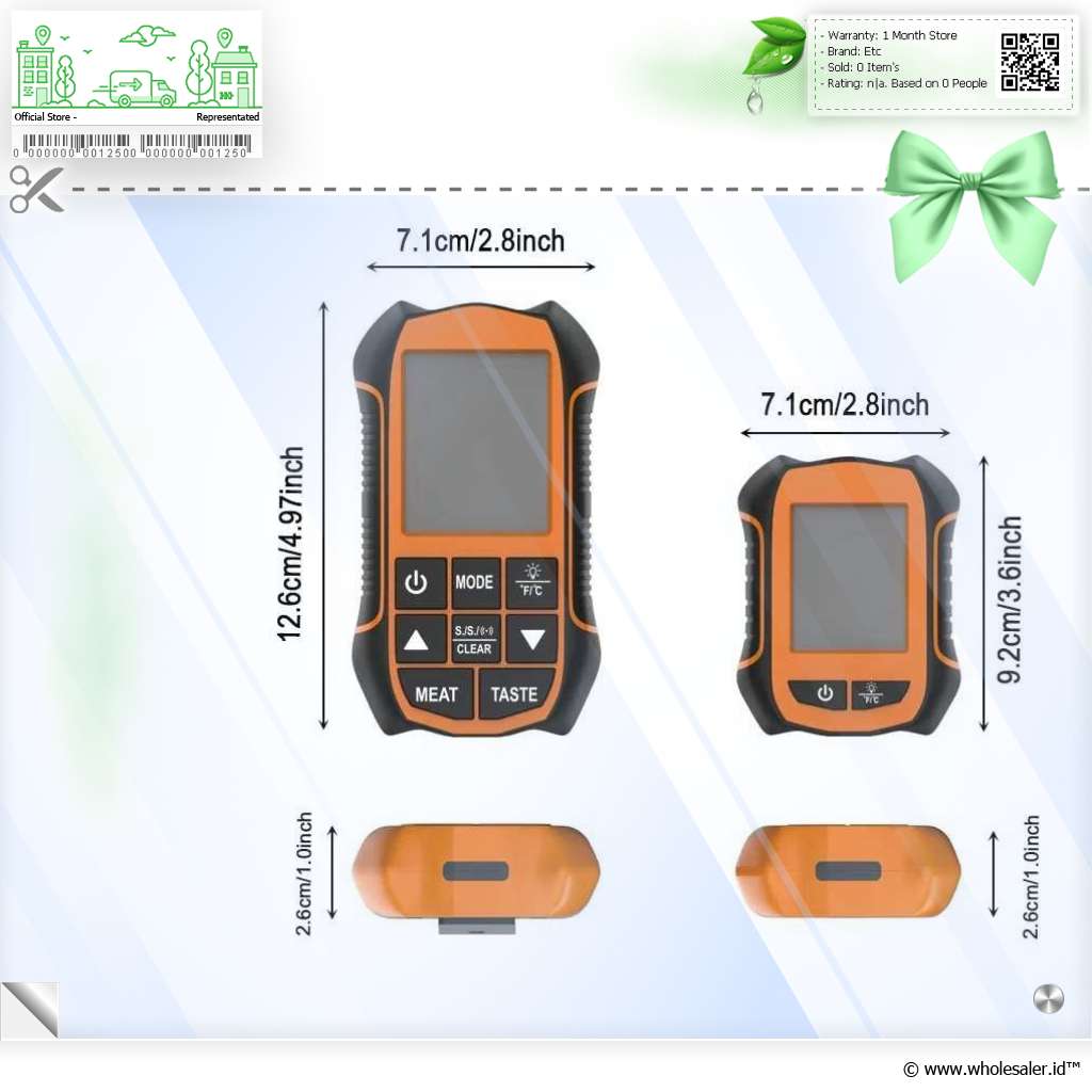 | Dimensi | : | Transmitter 7.1 x 2.6 x 9.2 cm Receiver 7.1 x 2.6 x 12.6 cm Probe 20 cm Kabel 1.2 M |