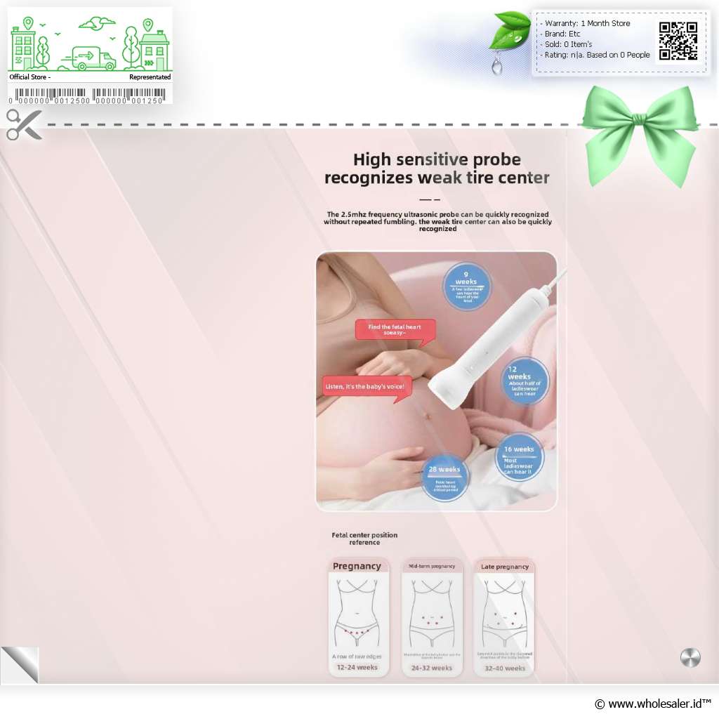 | Deteksi di Semua Tahap Kehamilan Memiliki rentang pengukuran 50–240 kali/menit dan tingkat error hanya ±2 BPM, menawarkan akurasi tinggi yang membuat hasil deteksi detak jantung janin jauh lebih stabil dan dapat dipercaya. Rentang yang luas memastikan alat mampu menangkap detak jantung pada semua tahap kehamilan, mulai dari sinyal yang masih lemah di trimester awal hingga detak yang lebih kuat di trimester akhir. |