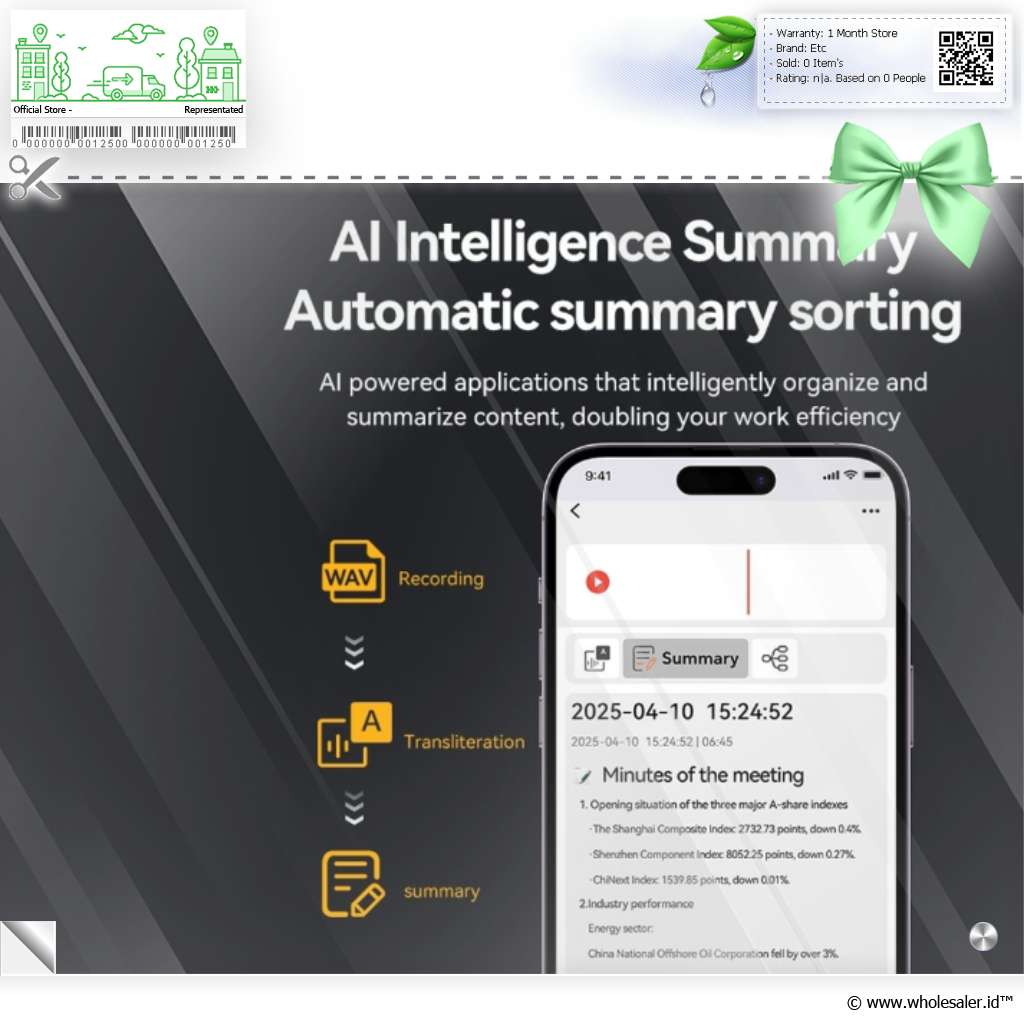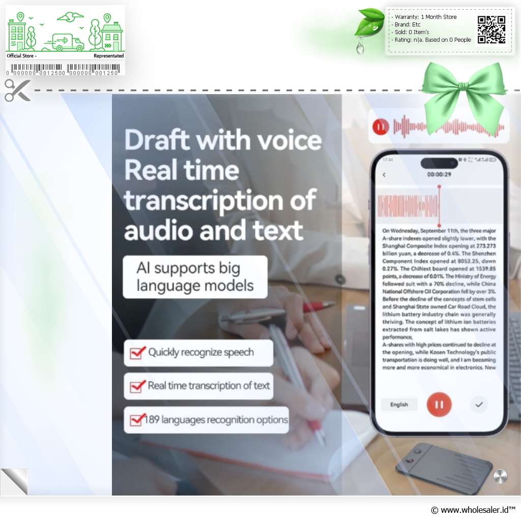 Tingkatkan efisiensi kerja Anda dengan VKTECH AI Audio Recorder, perangkat perekam suara pintar yang dilengkapi memori internal 64GB, transkripsi otomatis 80+ bahasa, serta dukungan kontrol penuh melalui aplikasi mobile. Dengan teknologi AI terintegrasi dan dukungan ChatGPT 4, alat ini mampu mengubah percakapan menjadi catatan profesional, ringkasan rapat, hingga mind map secara instan. Desainnya yang elegan dan ukuran yang kompak membuatnya mudah dibawa ke mana pun, menjadikannya asisten digital terbaik untuk profesional, mahasiswa, jurnalis, maupun pebisnis.