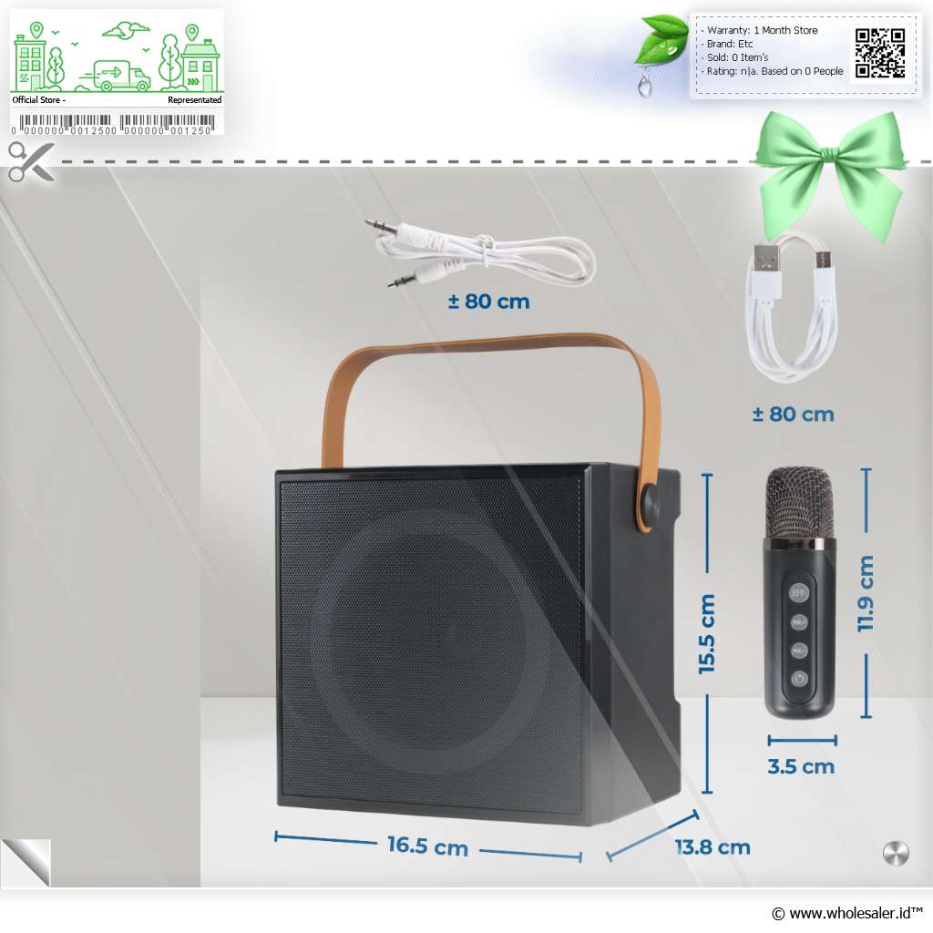 Dimensi | : | Speaker 16.5 x 13.8 x 15.5 cm Mikrofon 3.5 x 3.5 x 11.9 cm Kabel AUX 3.5 mm Sekitar 80 cm Kabel USB Type C Sekitar 80 cm |