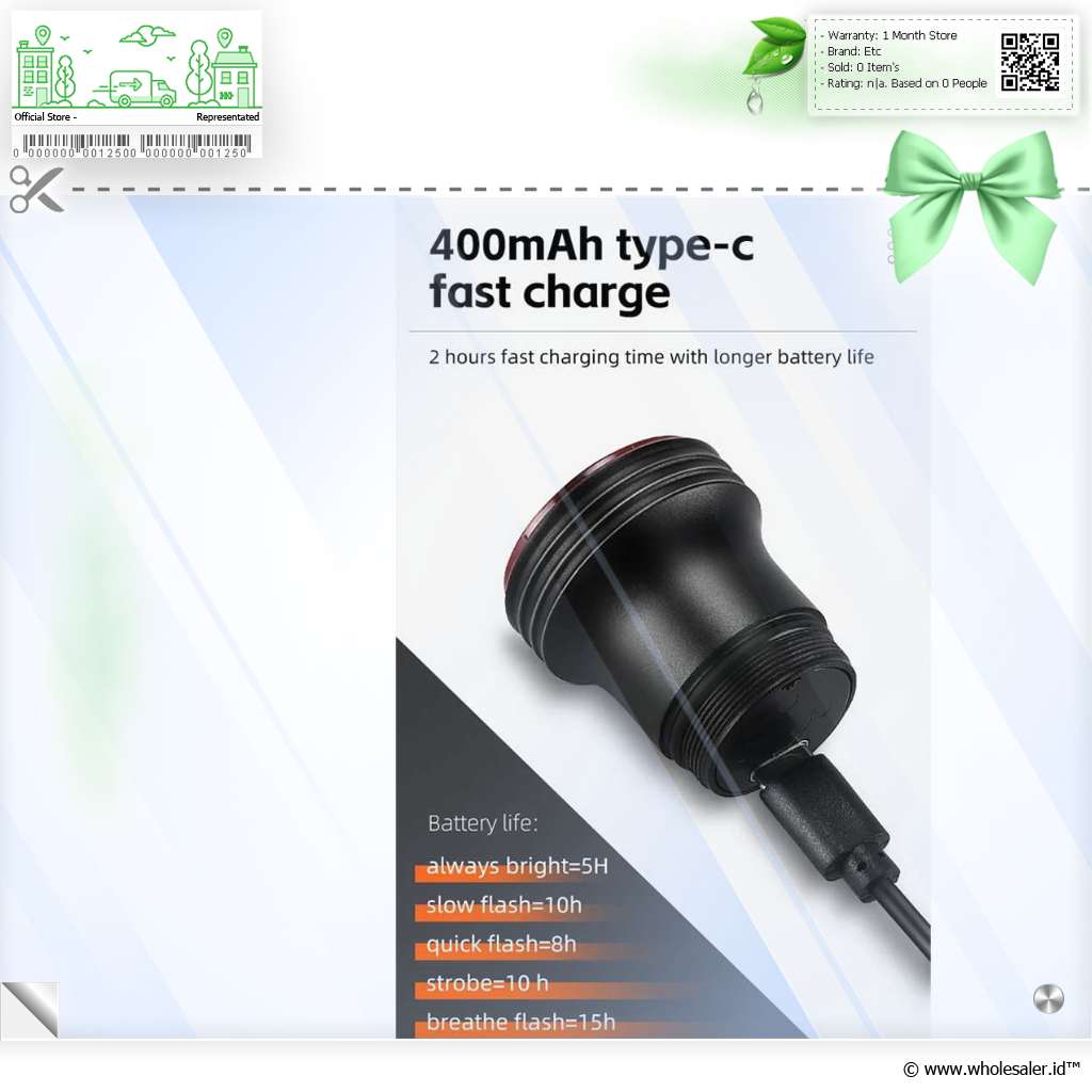 | Dengan Tenaga Baterai Lampu belakang sepeda dibekali dengan baterai bawaan 400 mAh yang mampu bertahan hingga 15 jam. Ketika daya baterai habis, Anda bisa mengisi ulang menggunakan kabel daya Type C yang tersedia selama 2 jam. |