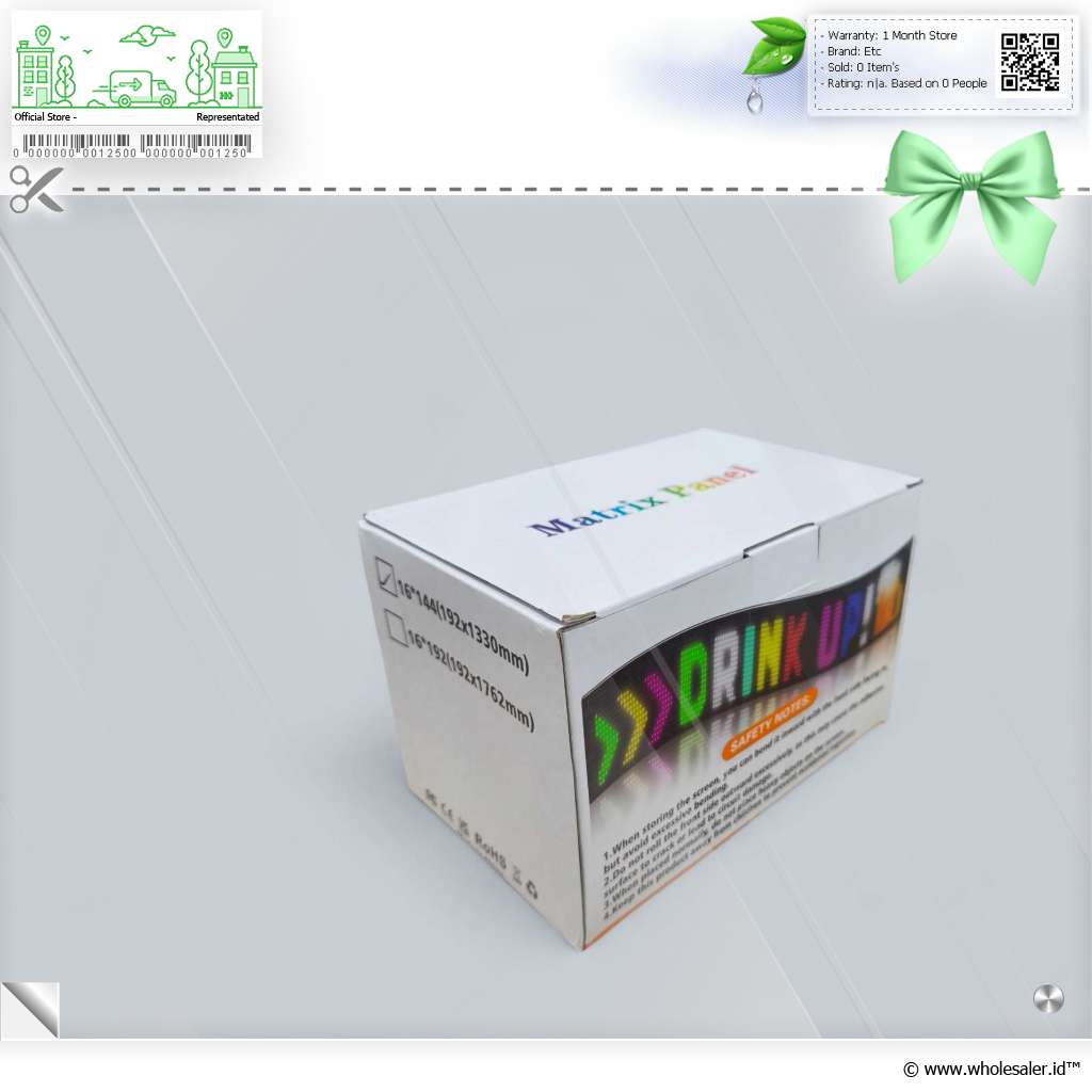 Lampu LED Aneka Warna LED matrix dari Wisciton menggunakan rangkaian 2304 LED untuk menghasilkan aneka desain menarik. Resolusi 16 x 144 pixel yang ditawarkan dapat menampilkan aneka teks dan desain warna yang terang serta dinamis. LED matrix ini juga lebih hemat listrik jika dibanding lampu bohlam atau neon biasa. |