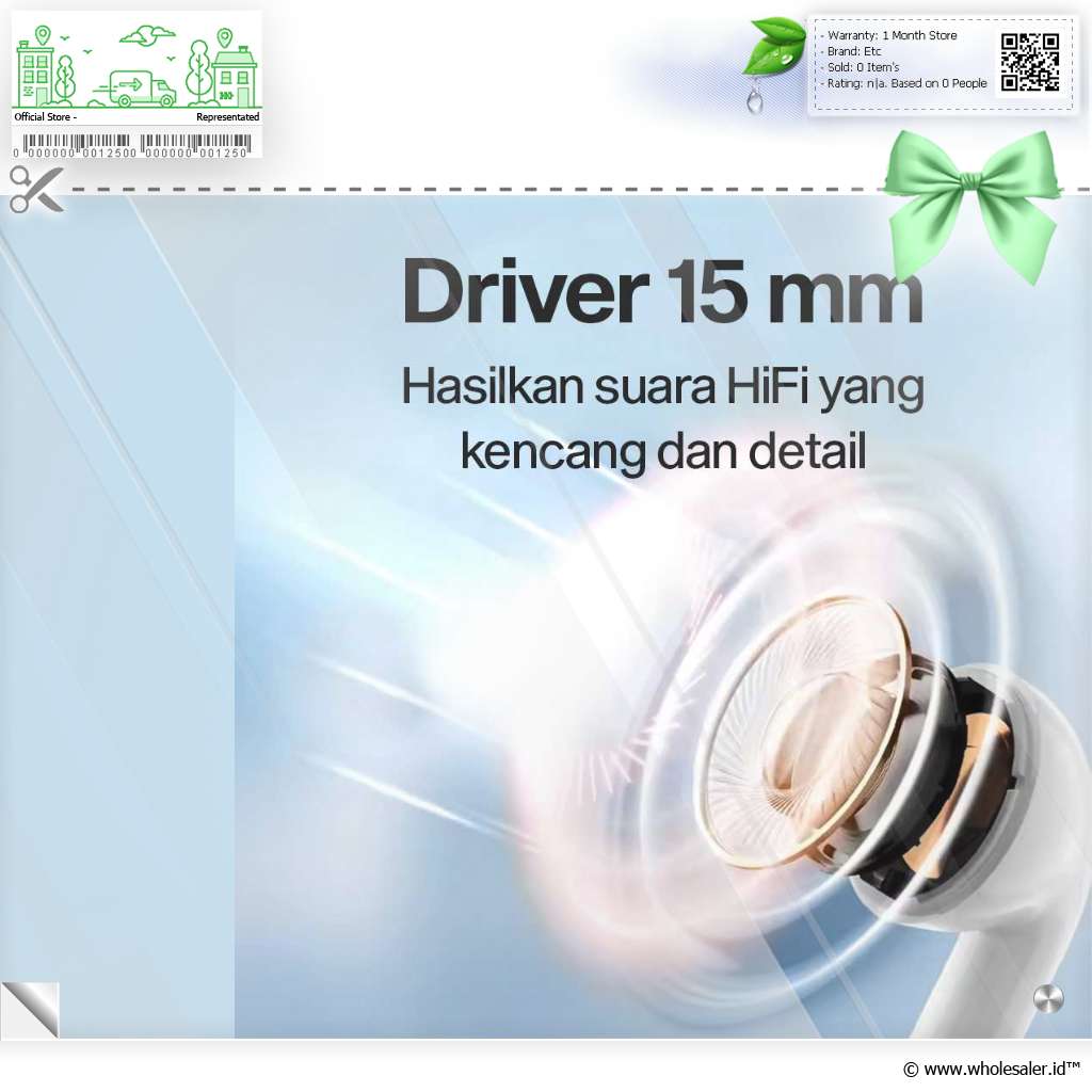 Suara Kencang dan Detail Driver 15 mm hasilkan suara dengan kualitas HiFi yang kencang dan detail. Cocok untuk mendegar aneka lagu favorit. |