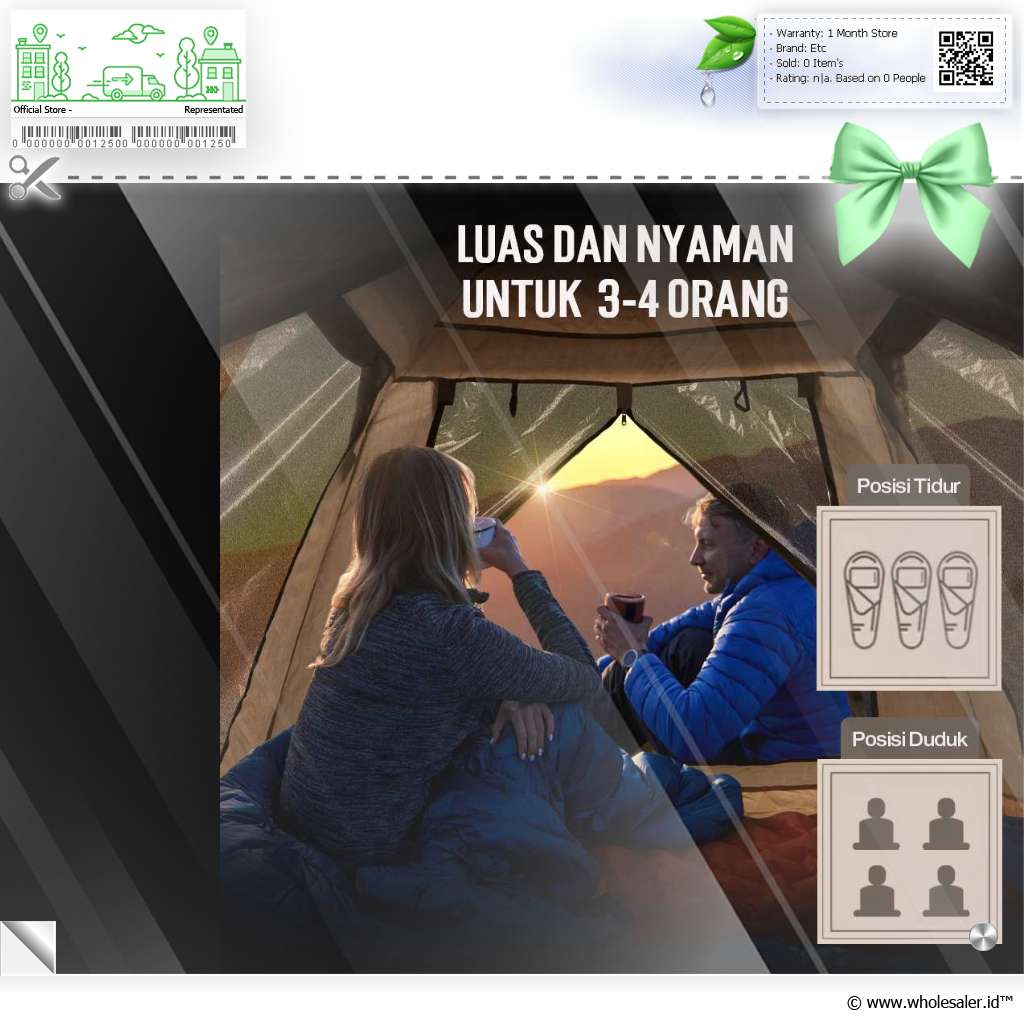 Liburan di alam bebas harusnya menyenangkan, bukan merepotkan. Untuk itu gunakan tenda camping satu ini yang mampu memuat 3-4 orang dengan pemasangan yang cepat. Materialnya memiliki ketahanan air tinggi sehingga tetap aman meski hujan deras.