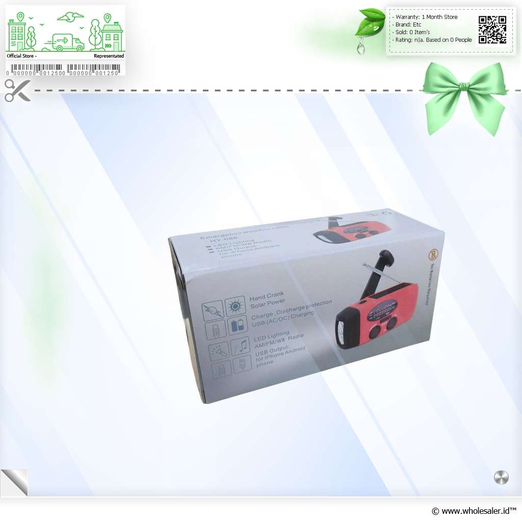 | Cara Pengisian | : | Solar Charging, Hand Crank Charging dan USB Charging |