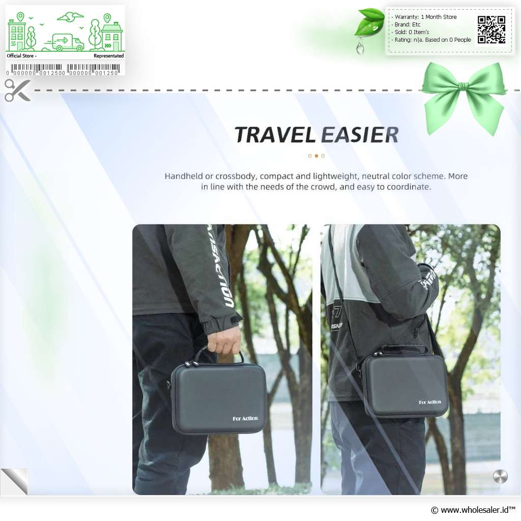Berbagai Skenario Penggunaan Setelah kamera aksi dan aksesori lain tertata rapi, ritsleting tas dapat Anda tutup dengan rapat. Karena telah dibekali handle, Anda bisa membawa tas dengan cara dijinjing. |