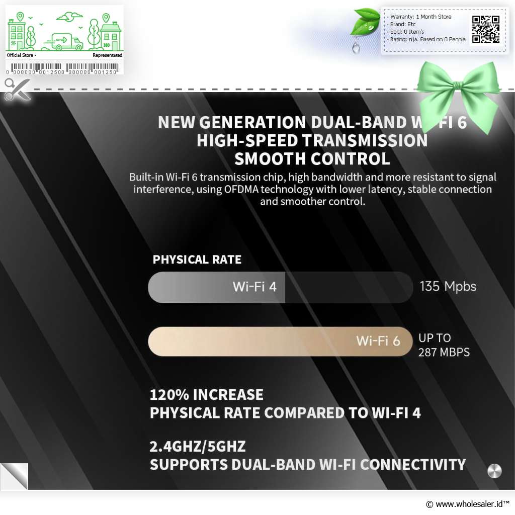 | Koneksi Stabil Tanpa Lag Nikmati koneksi lebih cepat dan stabil dengan dukungan WiFi 6 yang mendukung jaringan 2.4 GHz dan 5 GHz. Teknologi terbaru ini memastikan streaming video real-time berjalan lancar, tanpa buffering meski jarak router cukup jauh. |