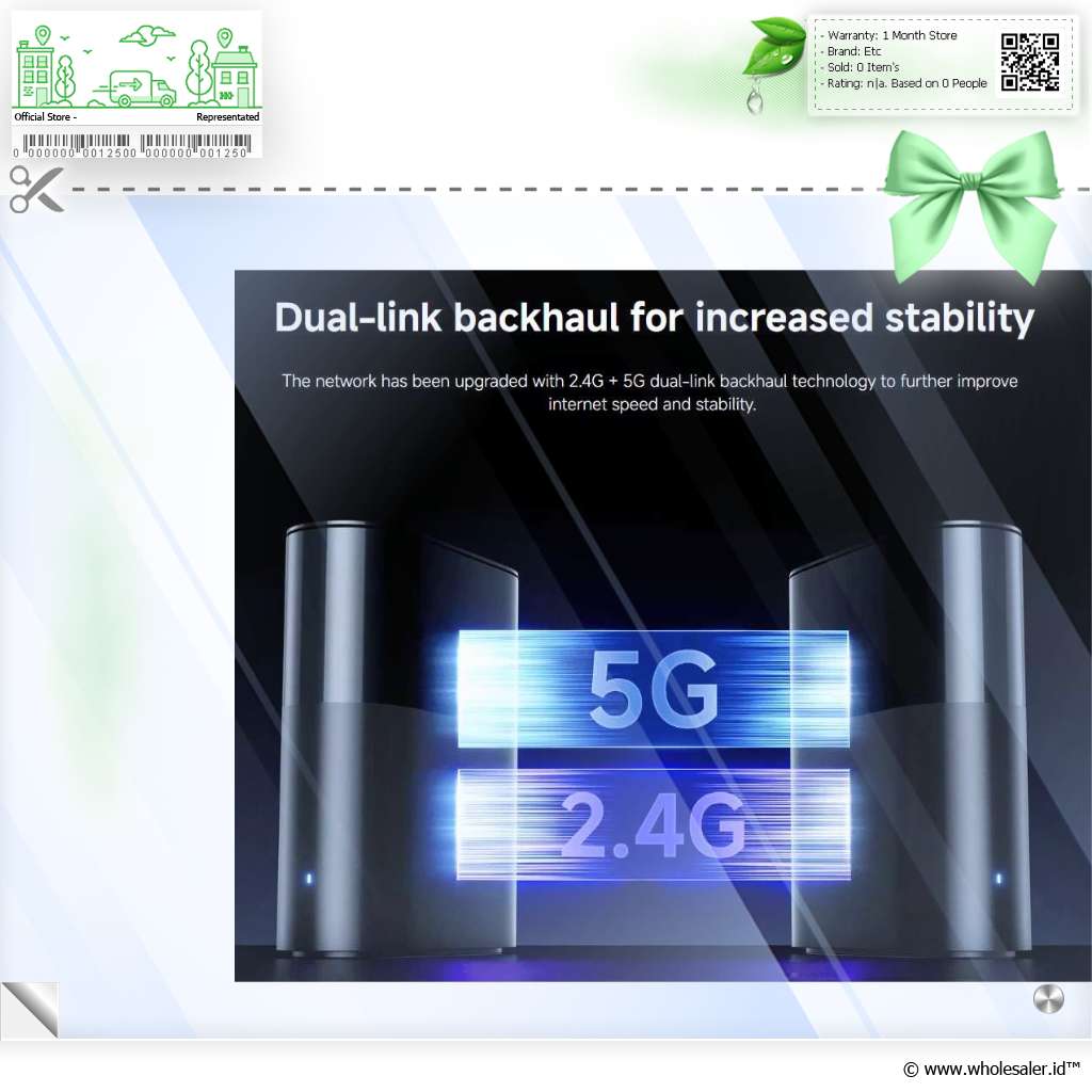| Terhubung dengan 2 Frekuensi Hadir dengan fitur MLO (Multi-Link Operation) yang memungkinkan perangkat terhubung ke dua frekuensi sekaligus, 2.4 GHz dan 5 GHz, dalam satu waktu. |
