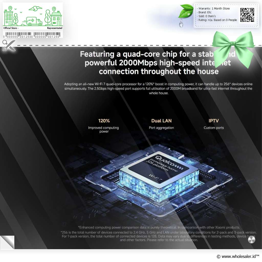 - 1 x Xiaomi Router WiFi 7 4 Antenna Dual Band Qualcomm 4K QAM OFDMA MLO - BE3600 Pro
